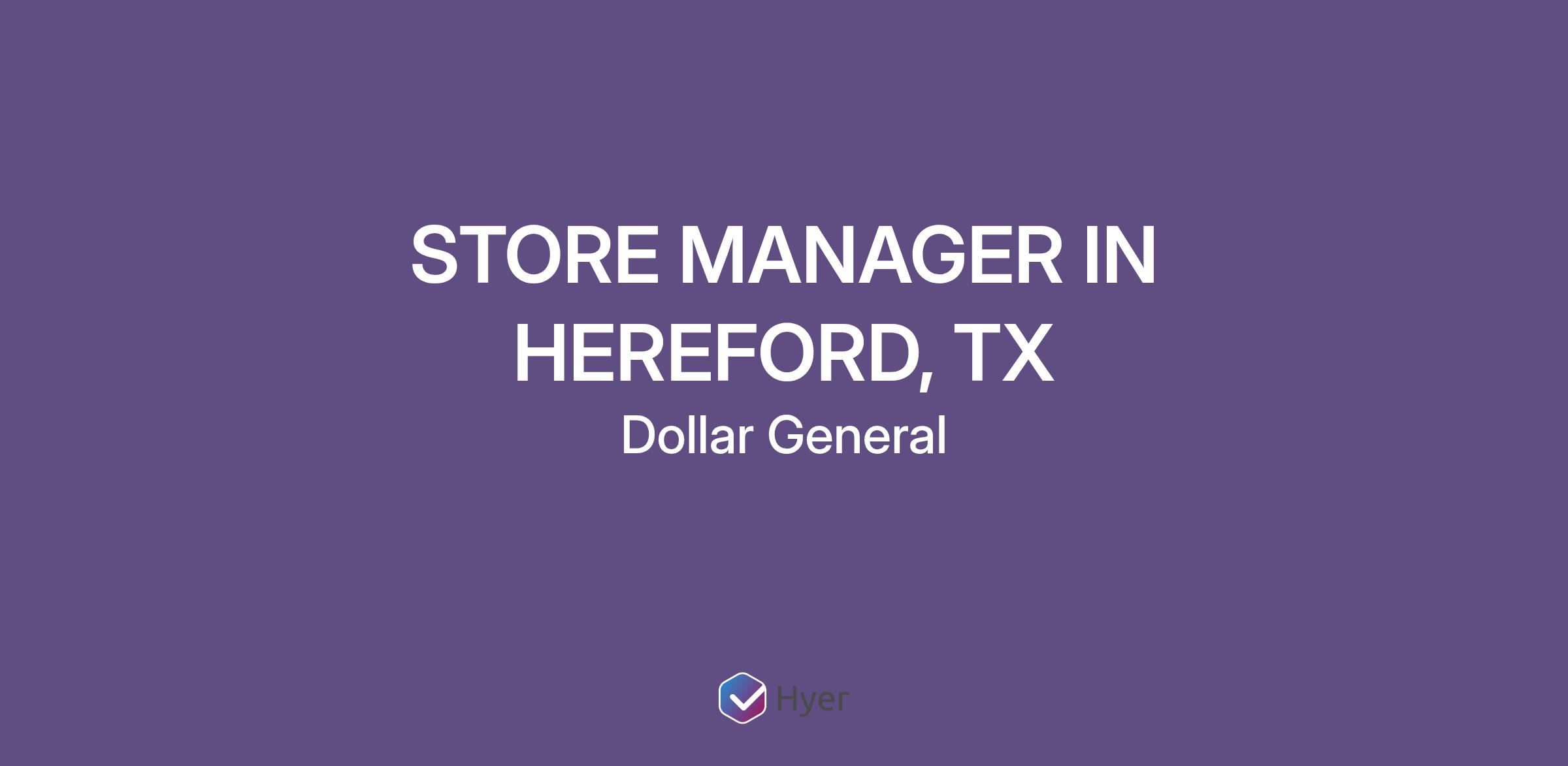 STORE MANAGER IN HEREFORD, TX