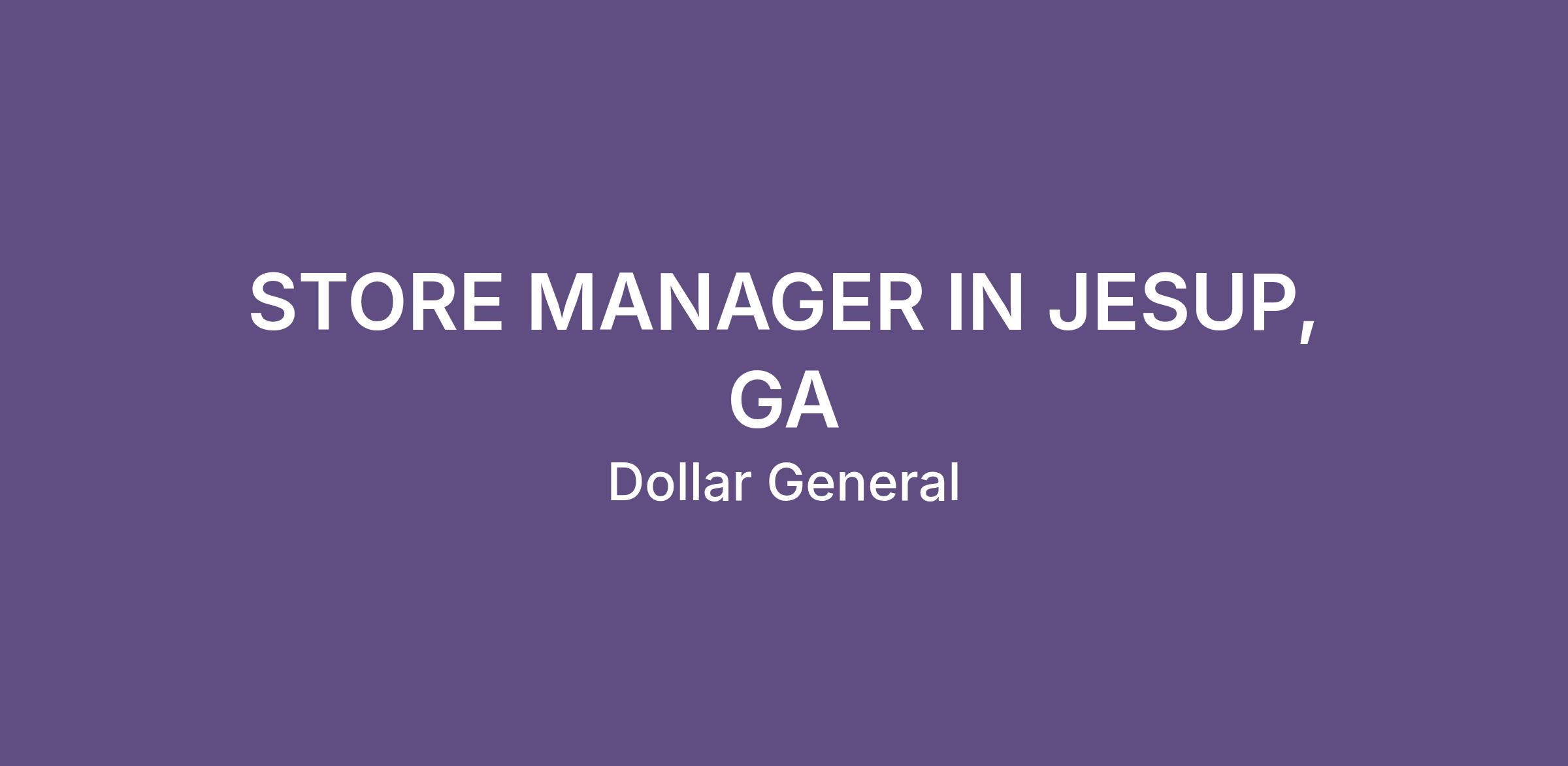 STORE MANAGER IN JESUP, GA