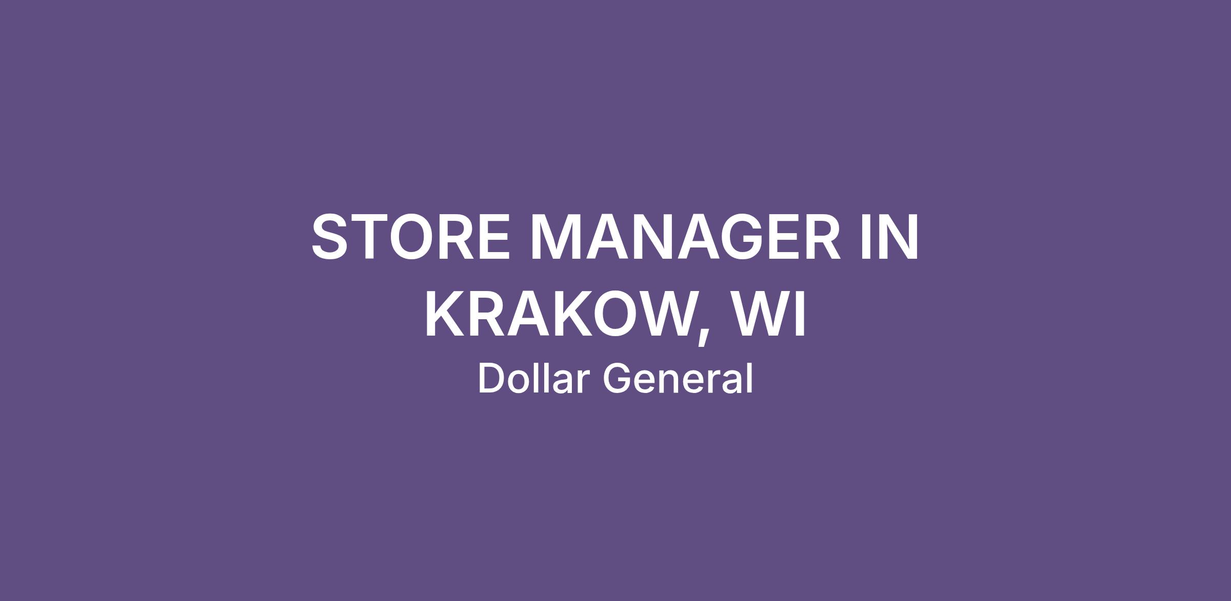 STORE MANAGER IN KRAKOW, WI