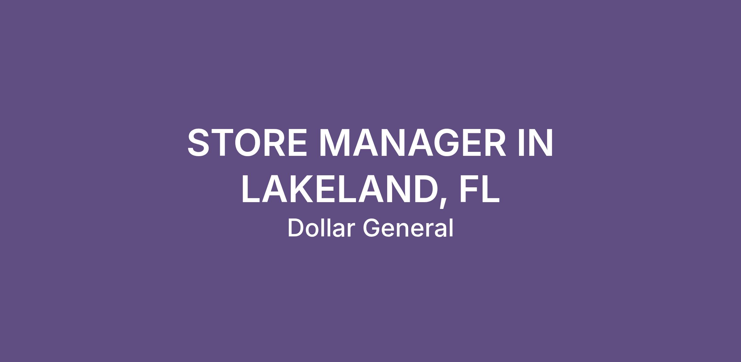 STORE MANAGER IN LAKELAND, FL