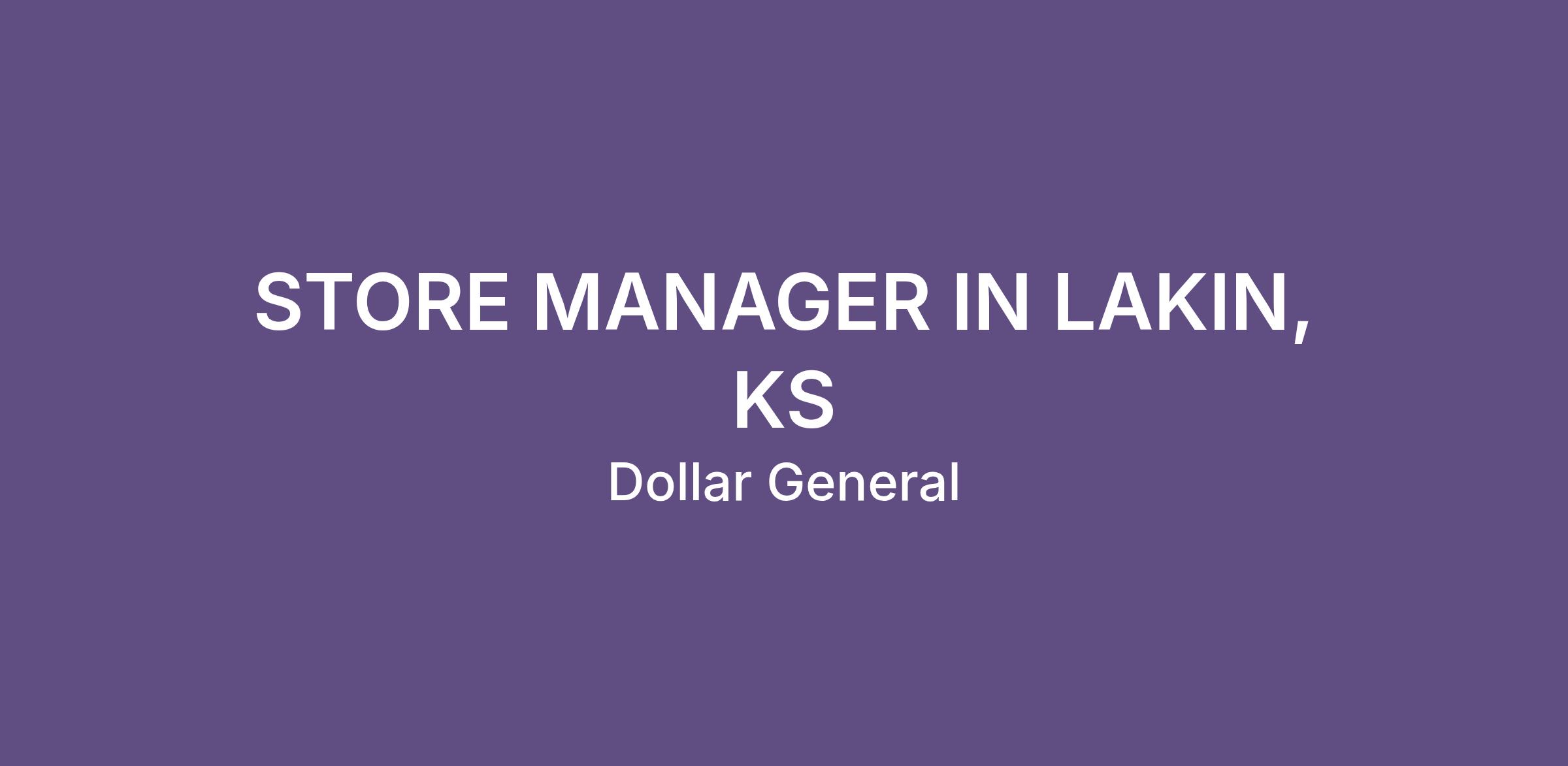 STORE MANAGER IN LAKIN, KS
