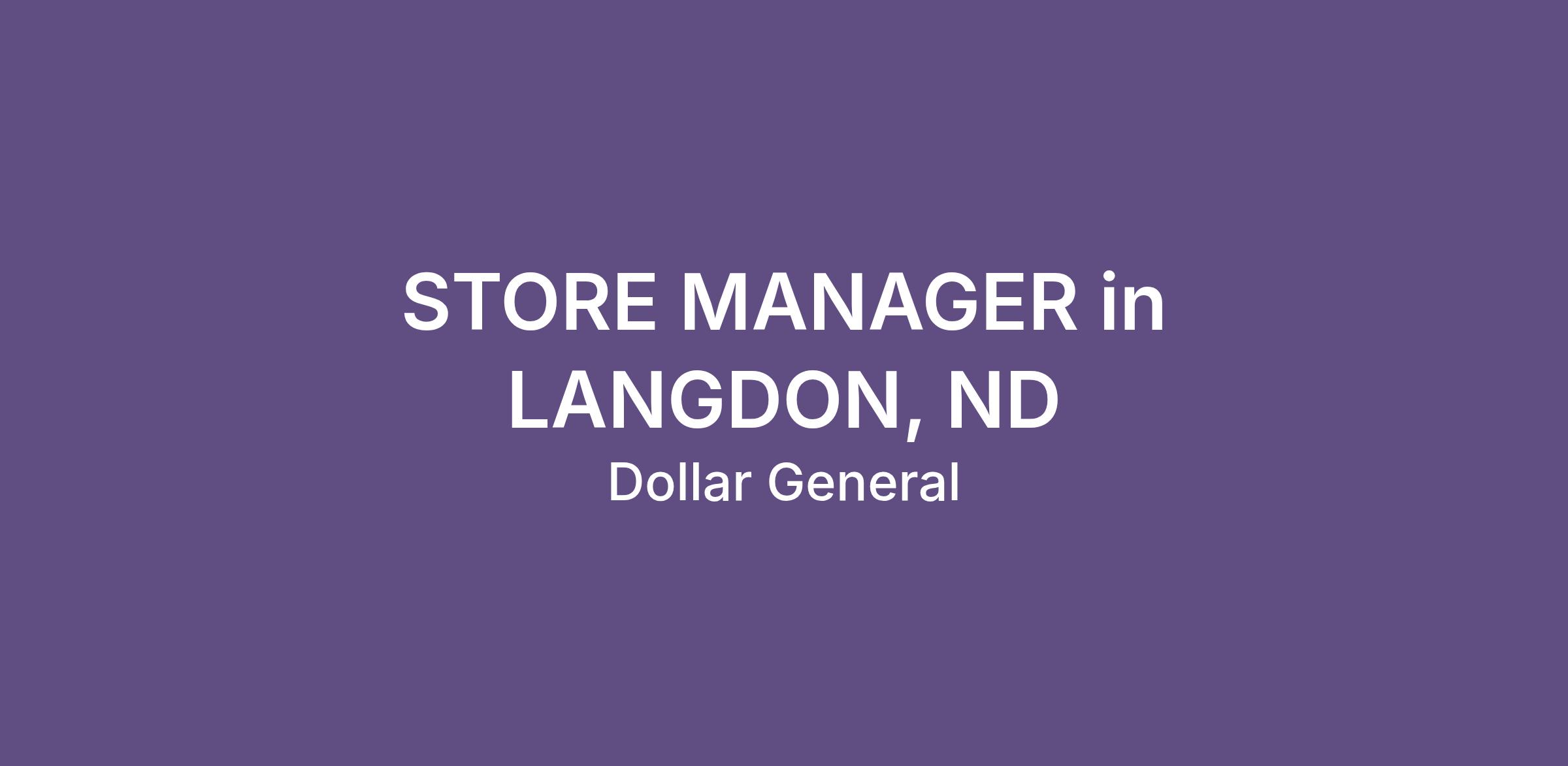 STORE MANAGER in LANGDON, ND