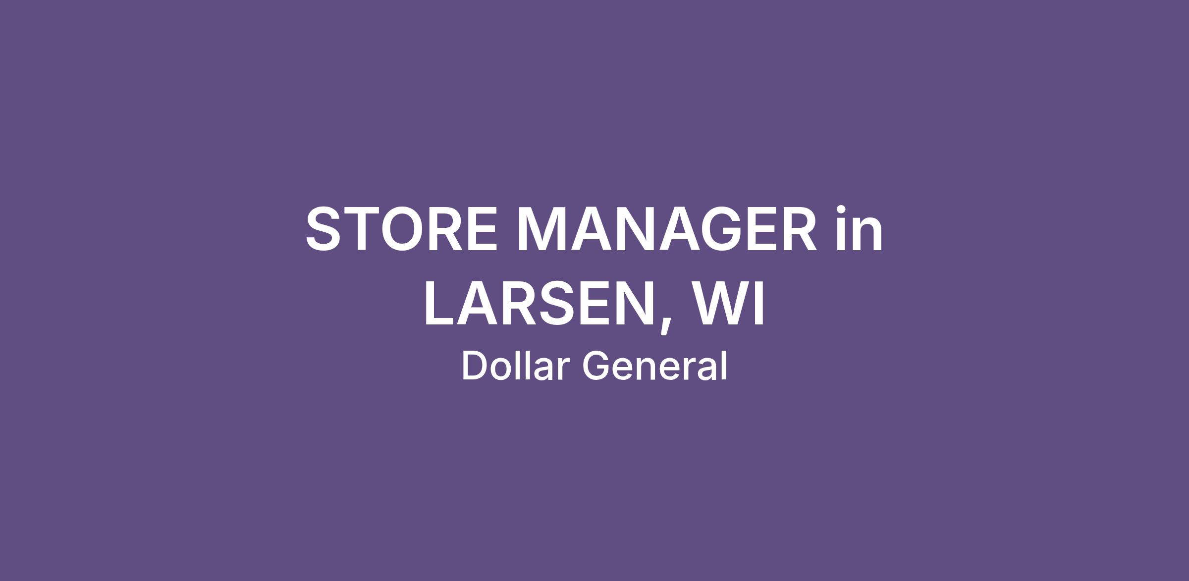 STORE MANAGER in LARSEN, WI