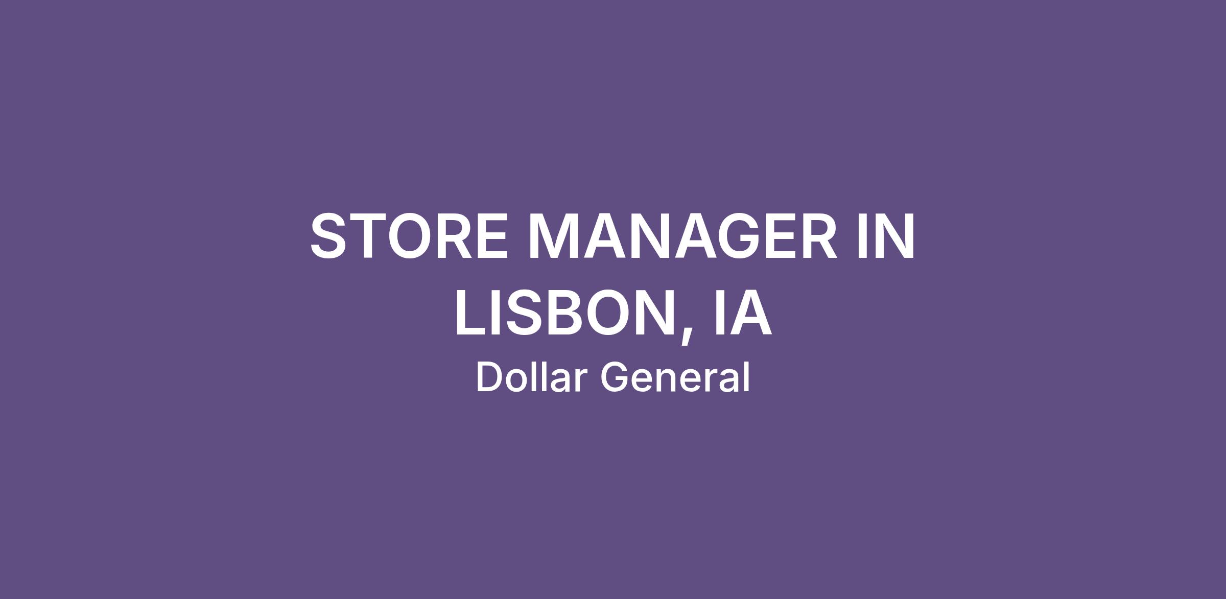 STORE MANAGER IN LISBON, IA