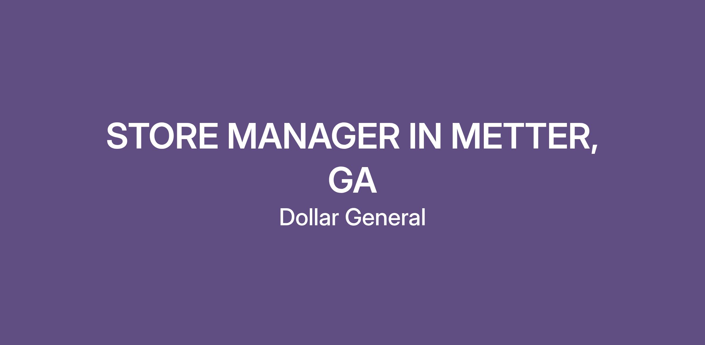 STORE MANAGER IN METTER, GA