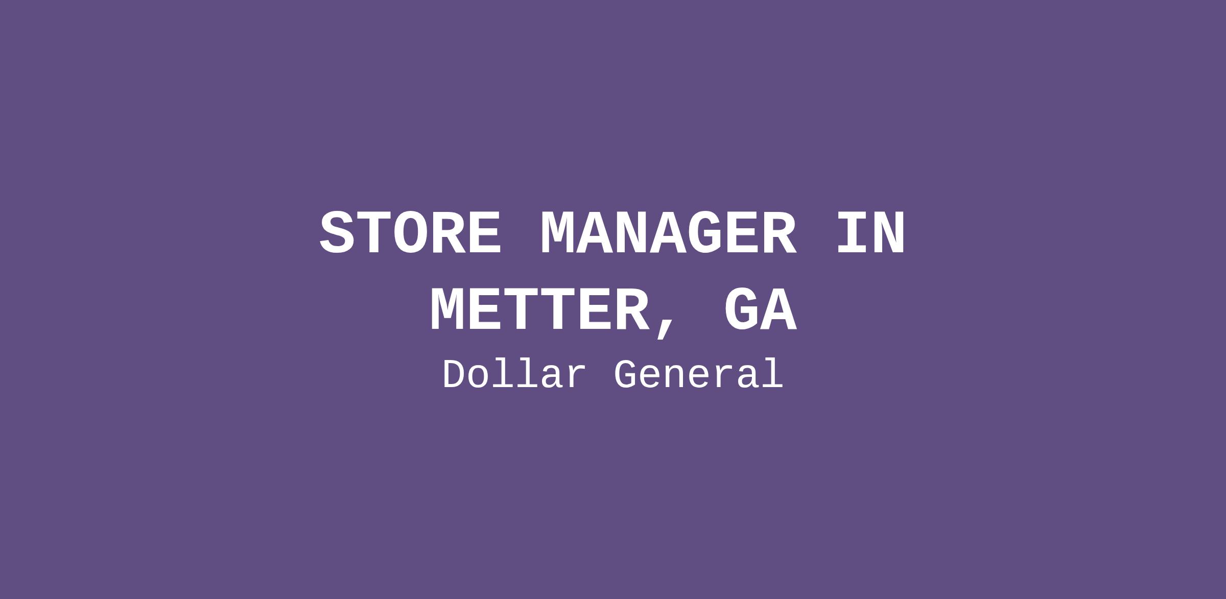STORE MANAGER IN METTER, GA
