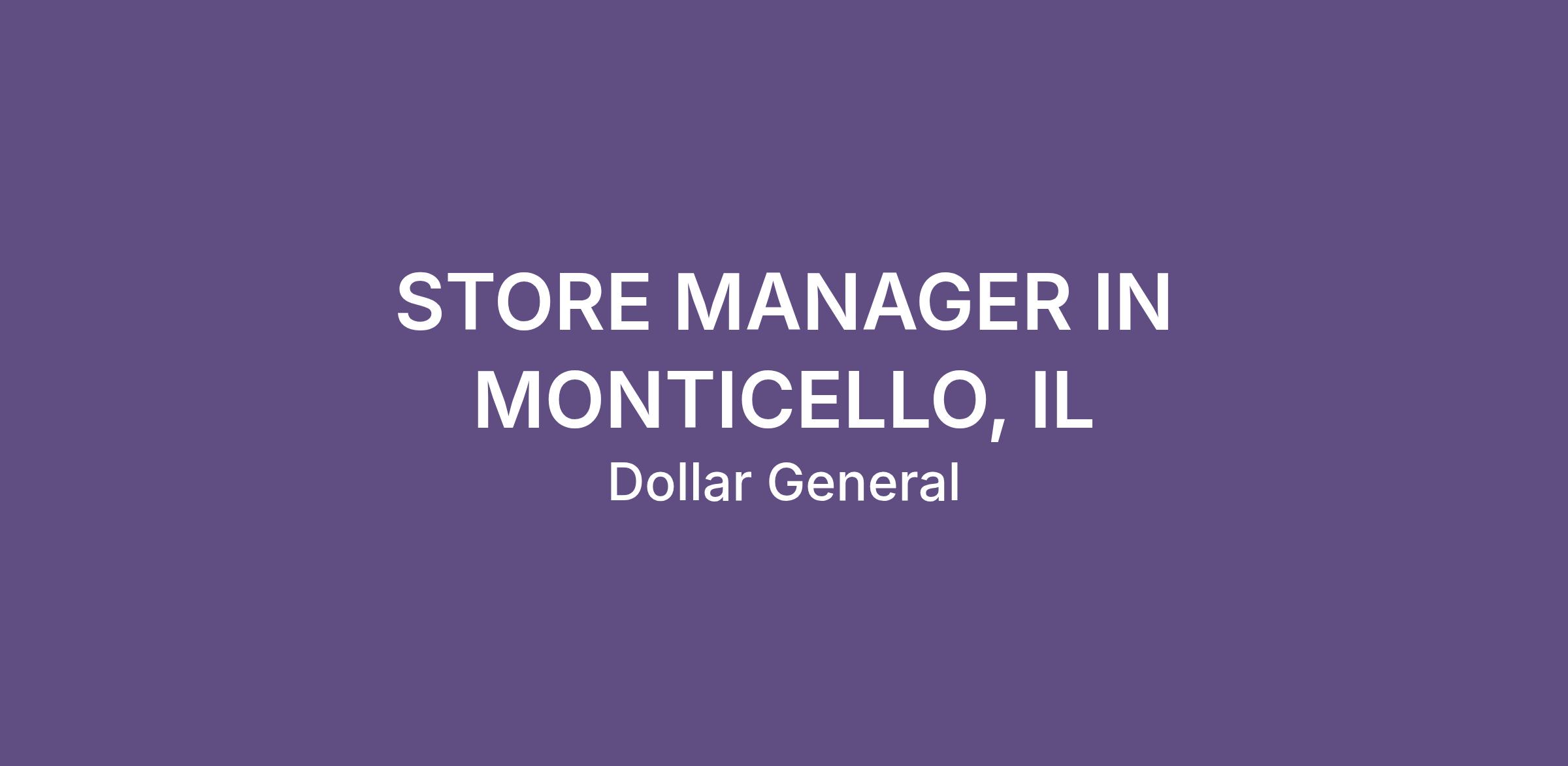 STORE MANAGER IN MONTICELLO, IL
