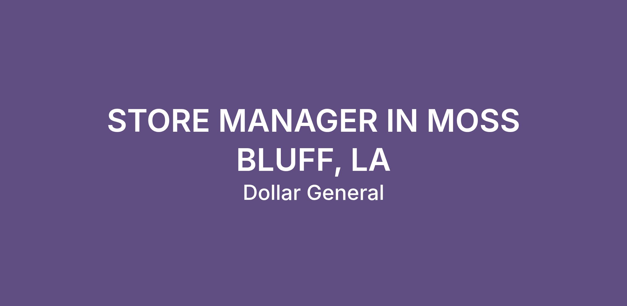 STORE MANAGER IN MOSS BLUFF, LA