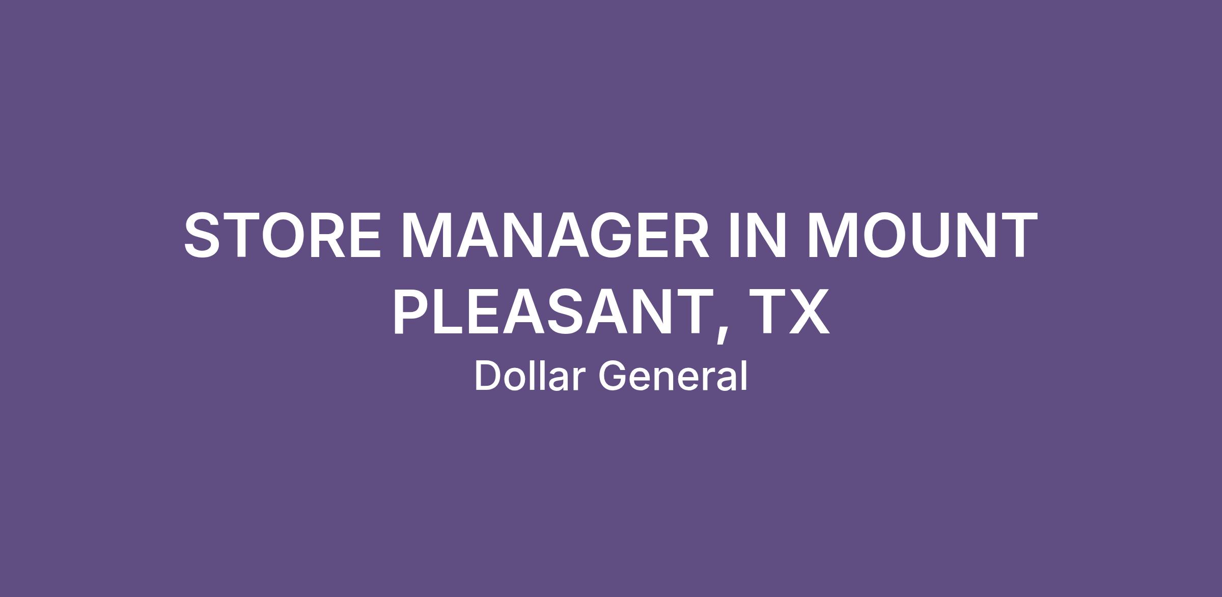 STORE MANAGER IN MOUNT PLEASANT, TX