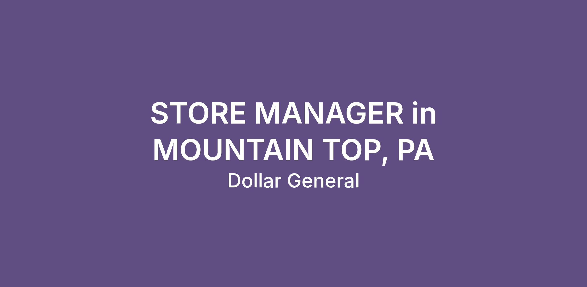 STORE MANAGER in MOUNTAIN TOP, PA