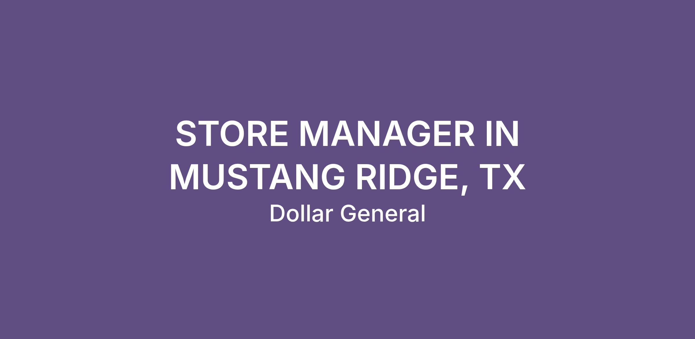 STORE MANAGER IN MUSTANG RIDGE, TX