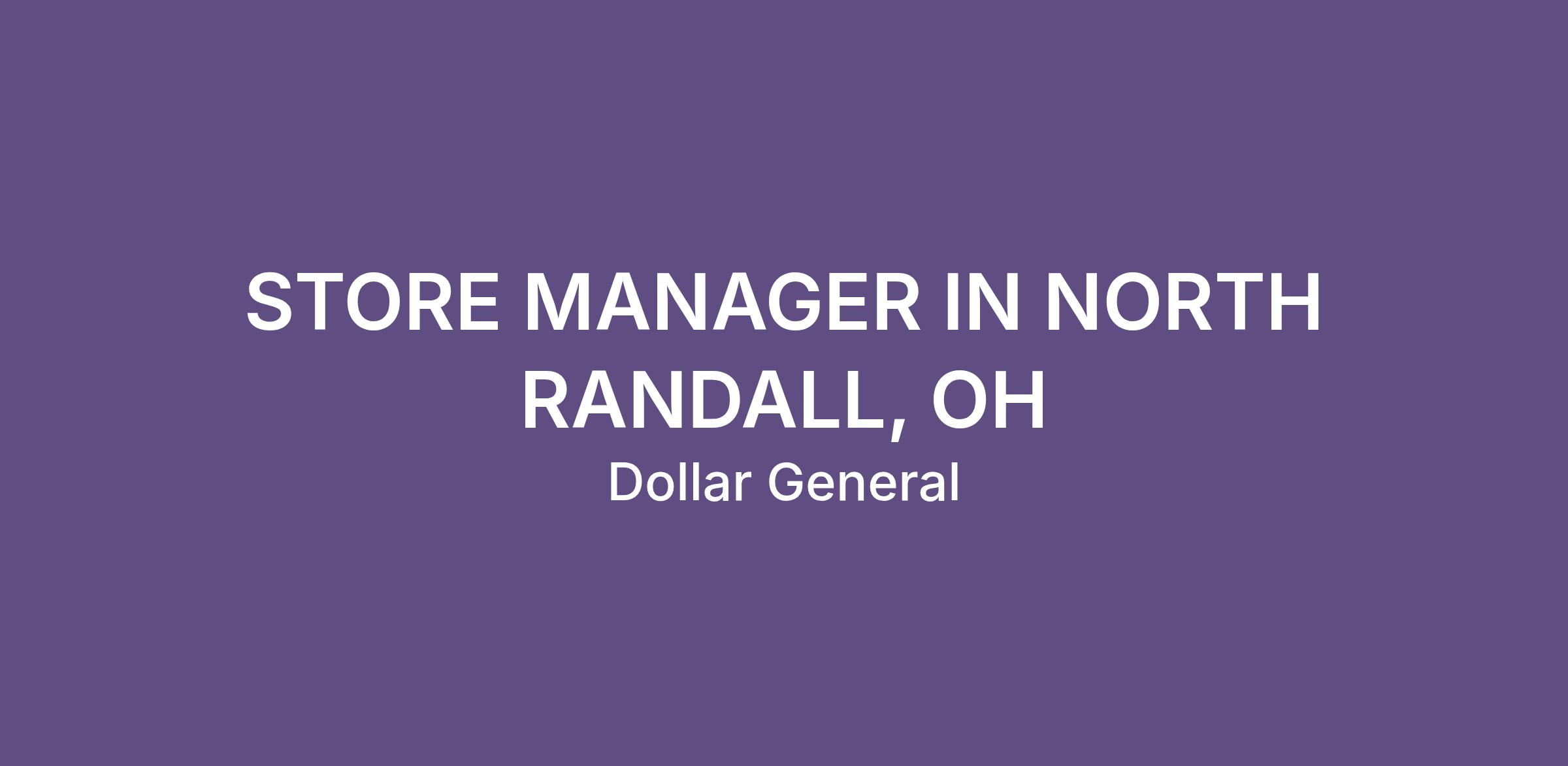 STORE MANAGER IN NORTH RANDALL, OH