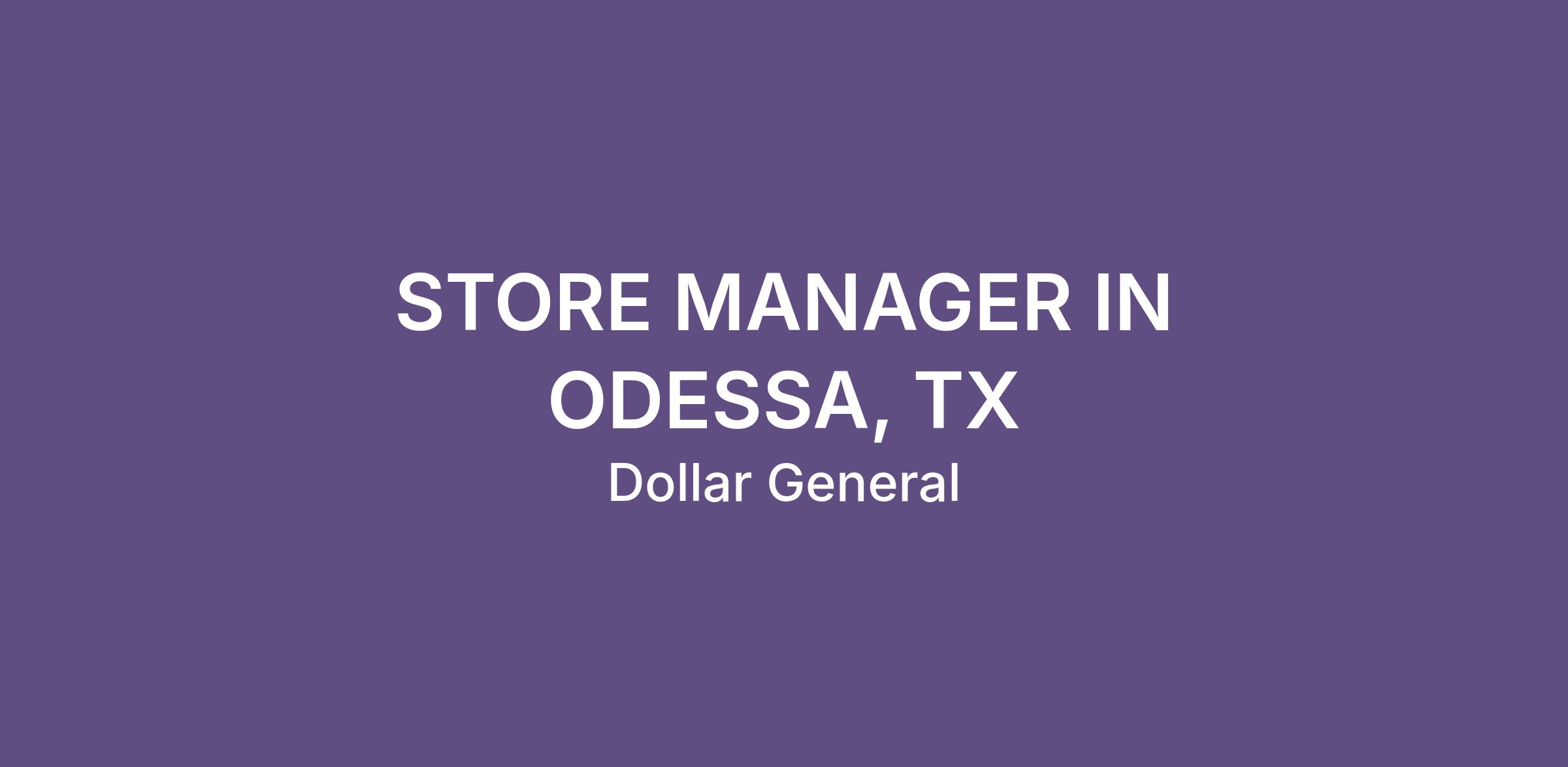 STORE MANAGER IN ODESSA, TX