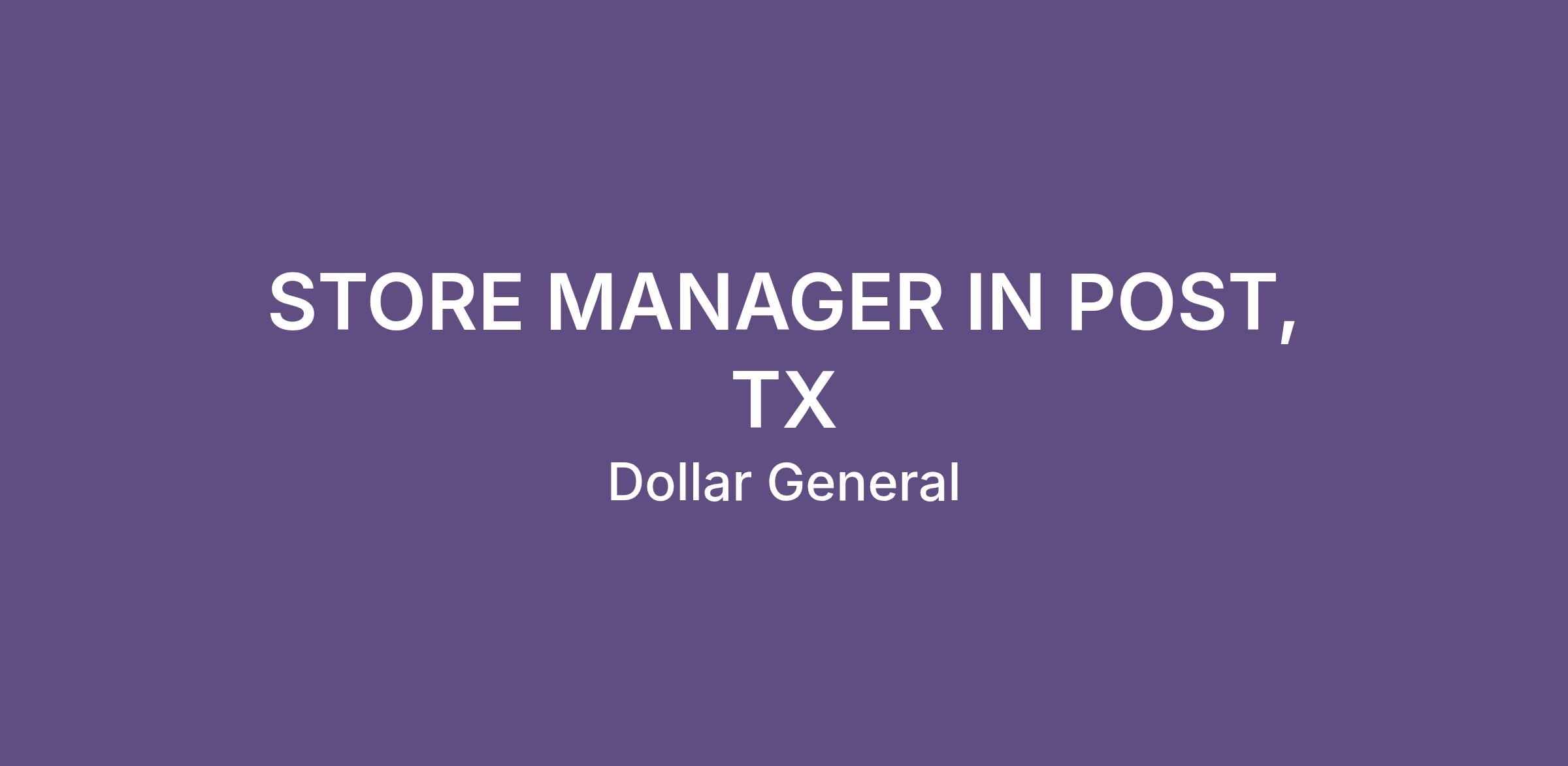 STORE MANAGER IN POST, TX
