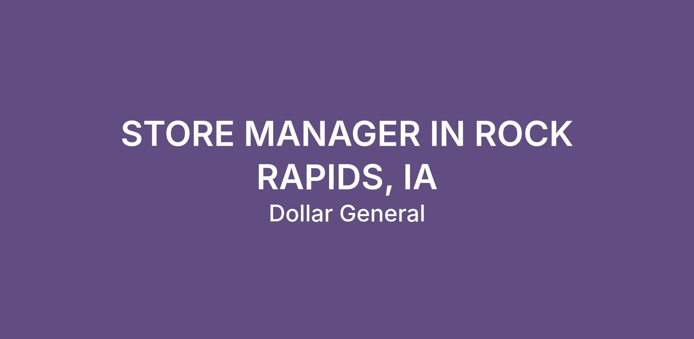 STORE MANAGER IN ROCK RAPIDS, IA