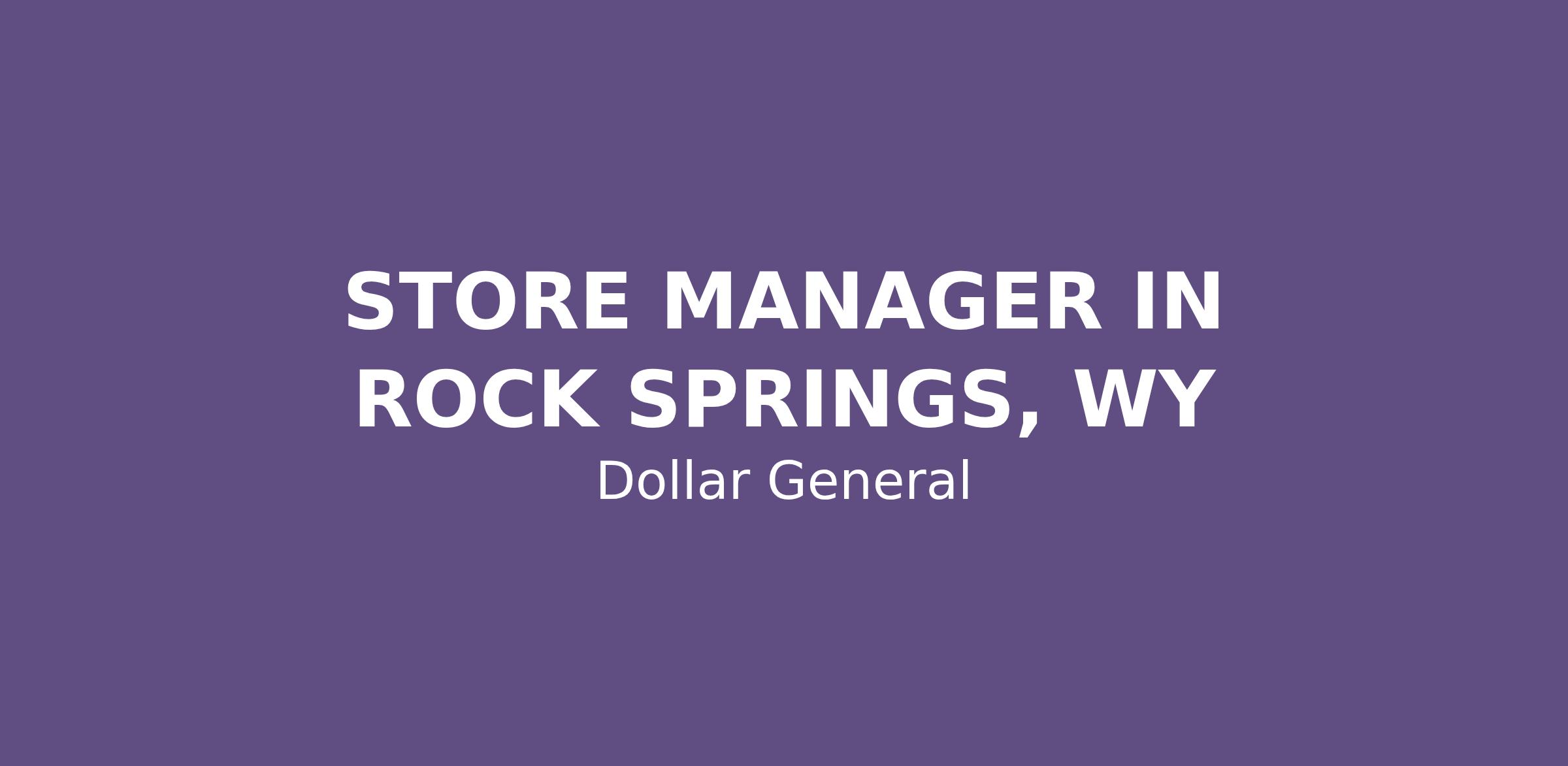 STORE MANAGER IN ROCK SPRINGS, WY