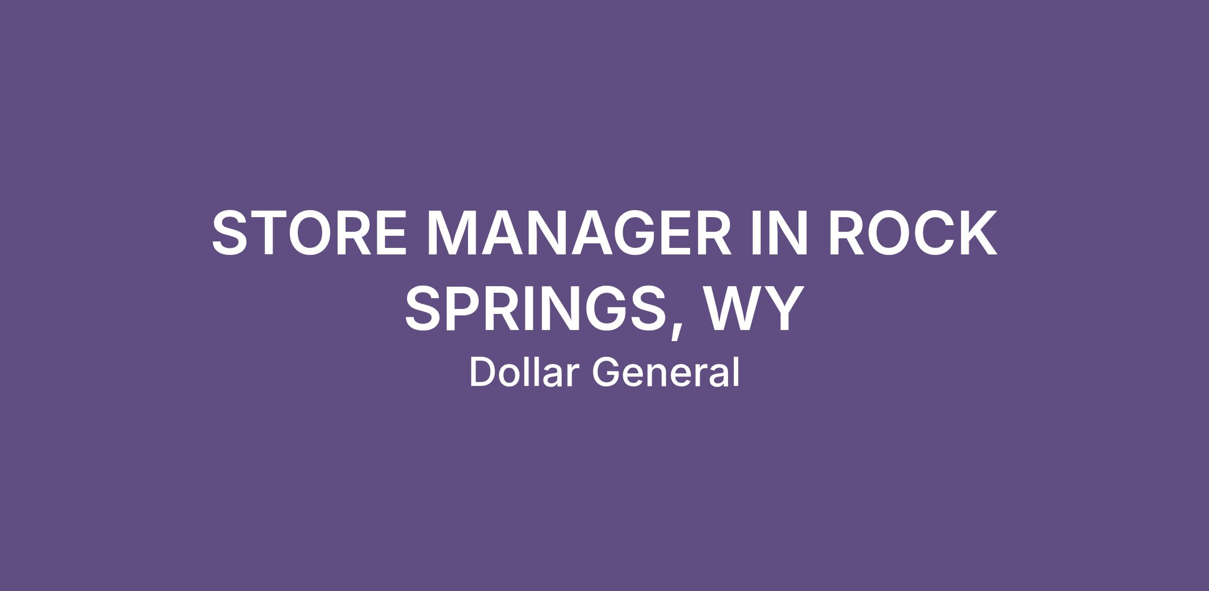 STORE MANAGER IN ROCK SPRINGS, WY