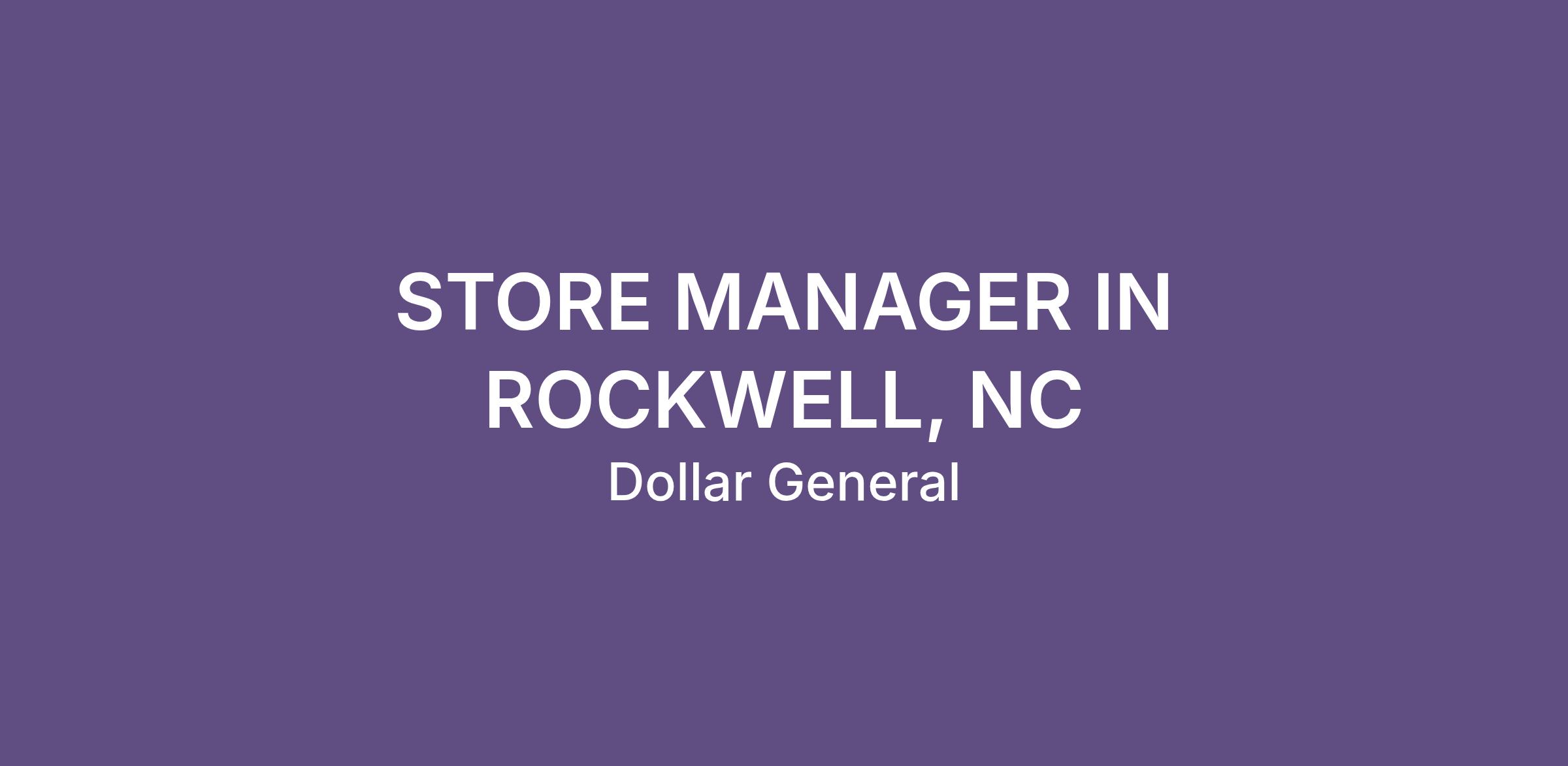 STORE MANAGER IN ROCKWELL, NC