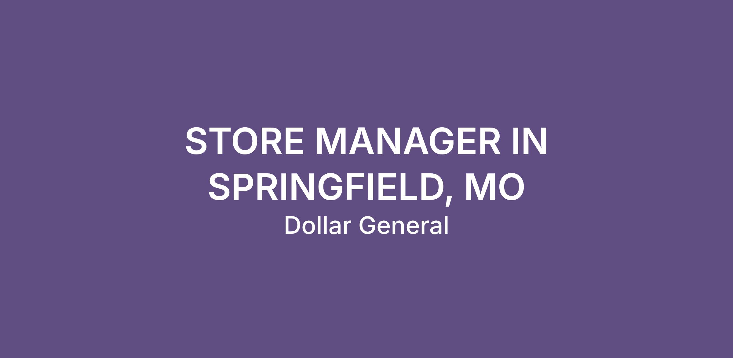 STORE MANAGER IN SPRINGFIELD, MO