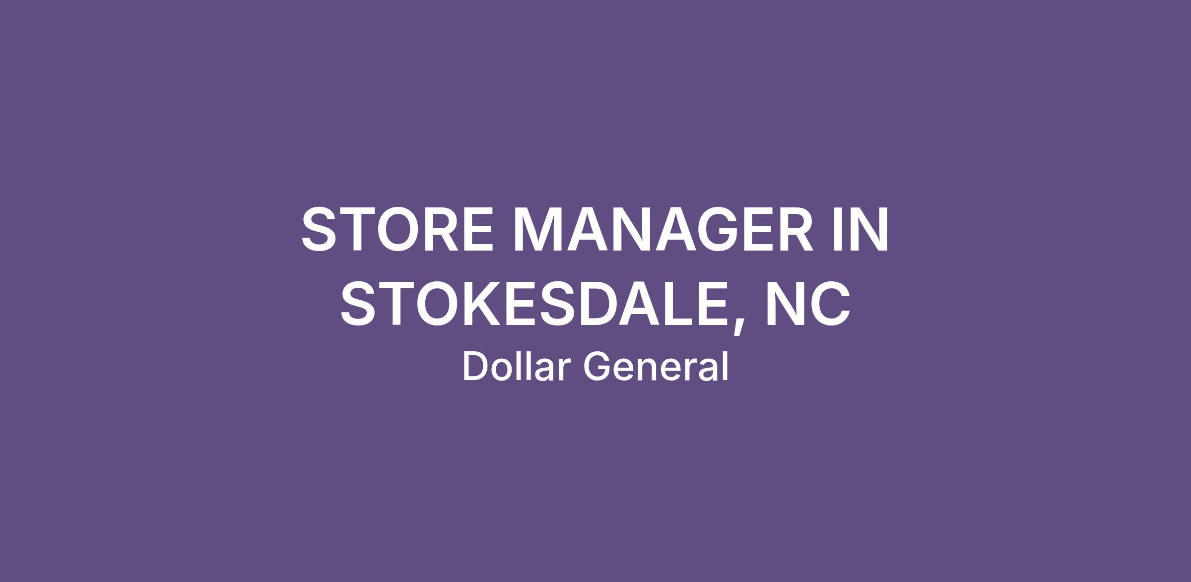 STORE MANAGER IN STOKESDALE, NC