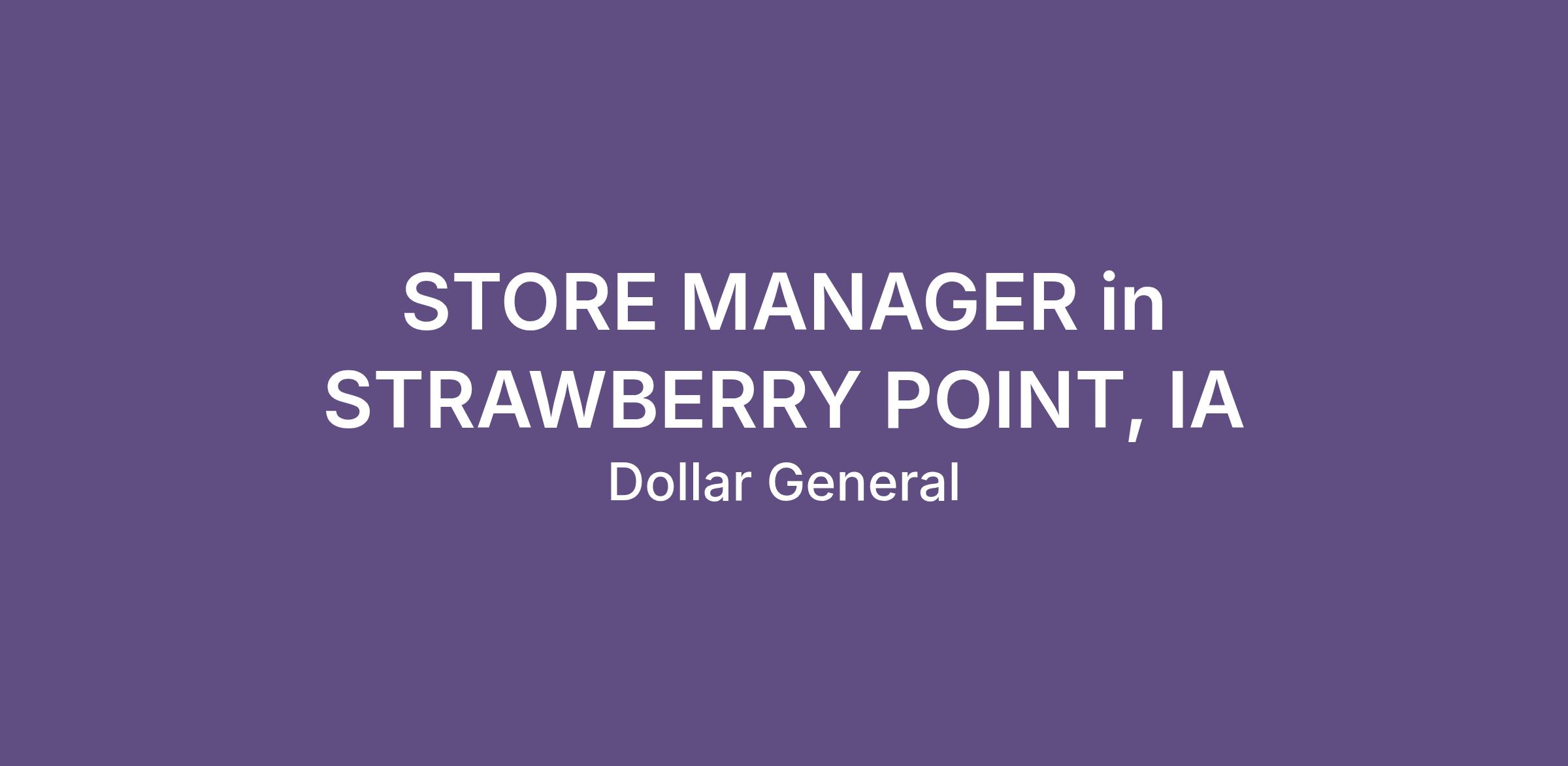 STORE MANAGER in STRAWBERRY POINT, IA