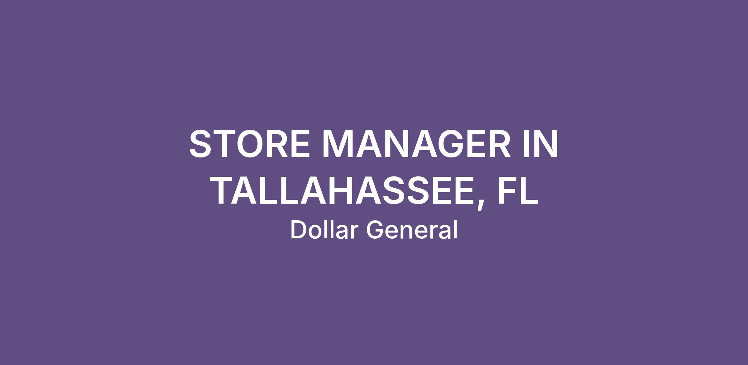 STORE MANAGER IN TALLAHASSEE, FL