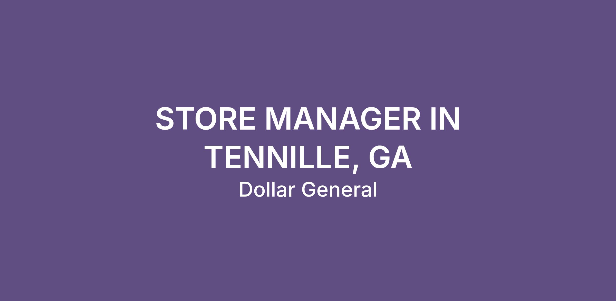 STORE MANAGER IN TENNILLE, GA