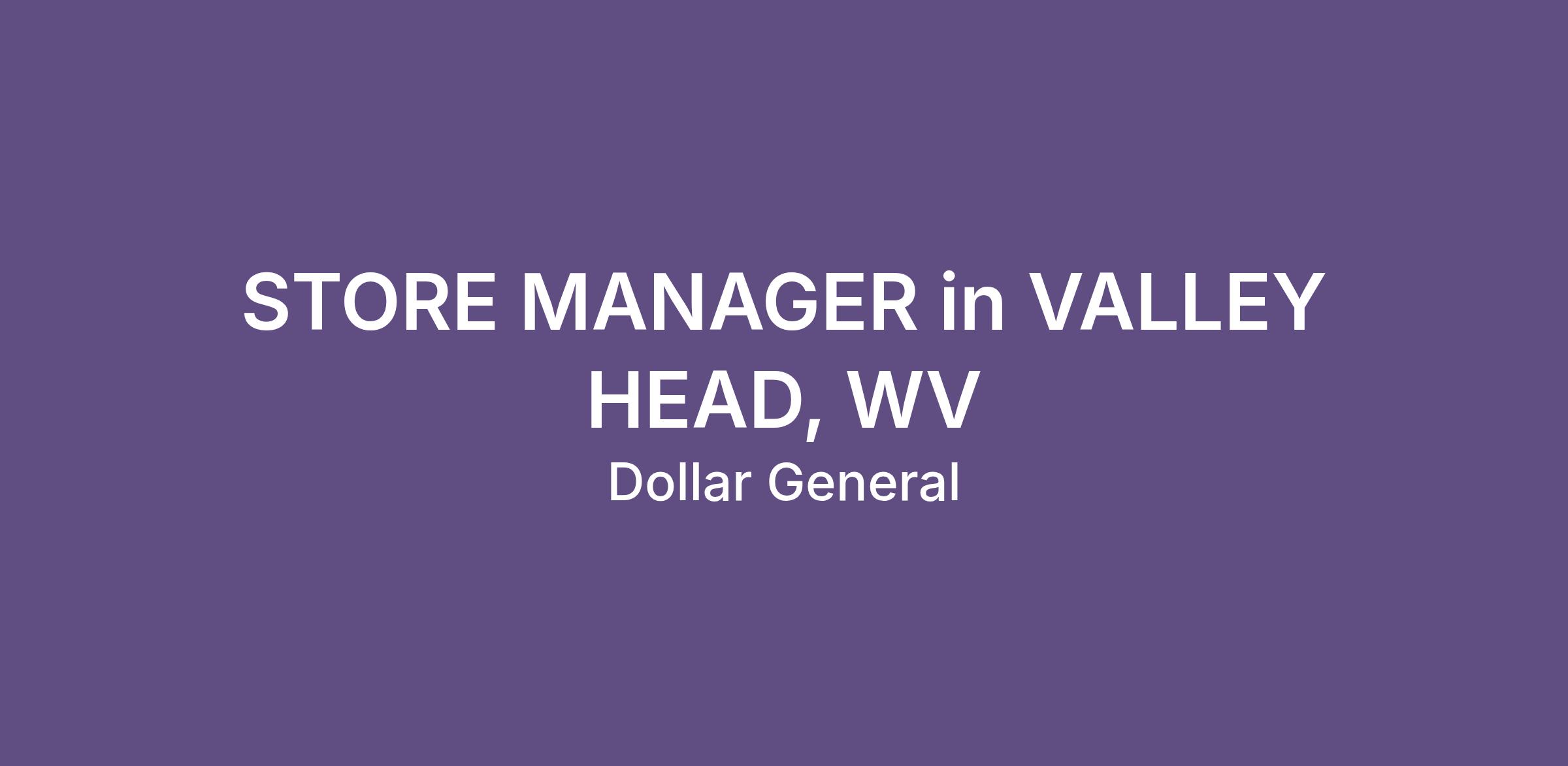STORE MANAGER in VALLEY HEAD, WV