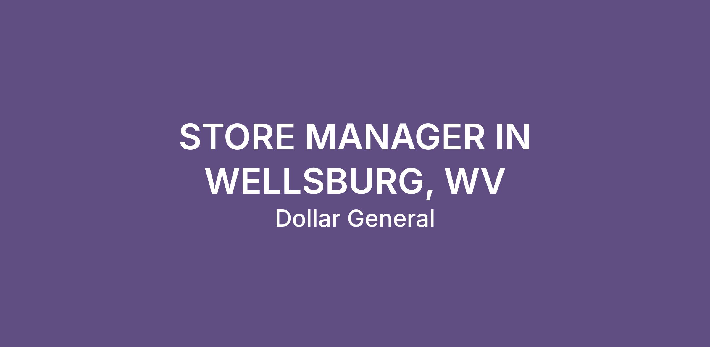 STORE MANAGER IN WELLSBURG, WV