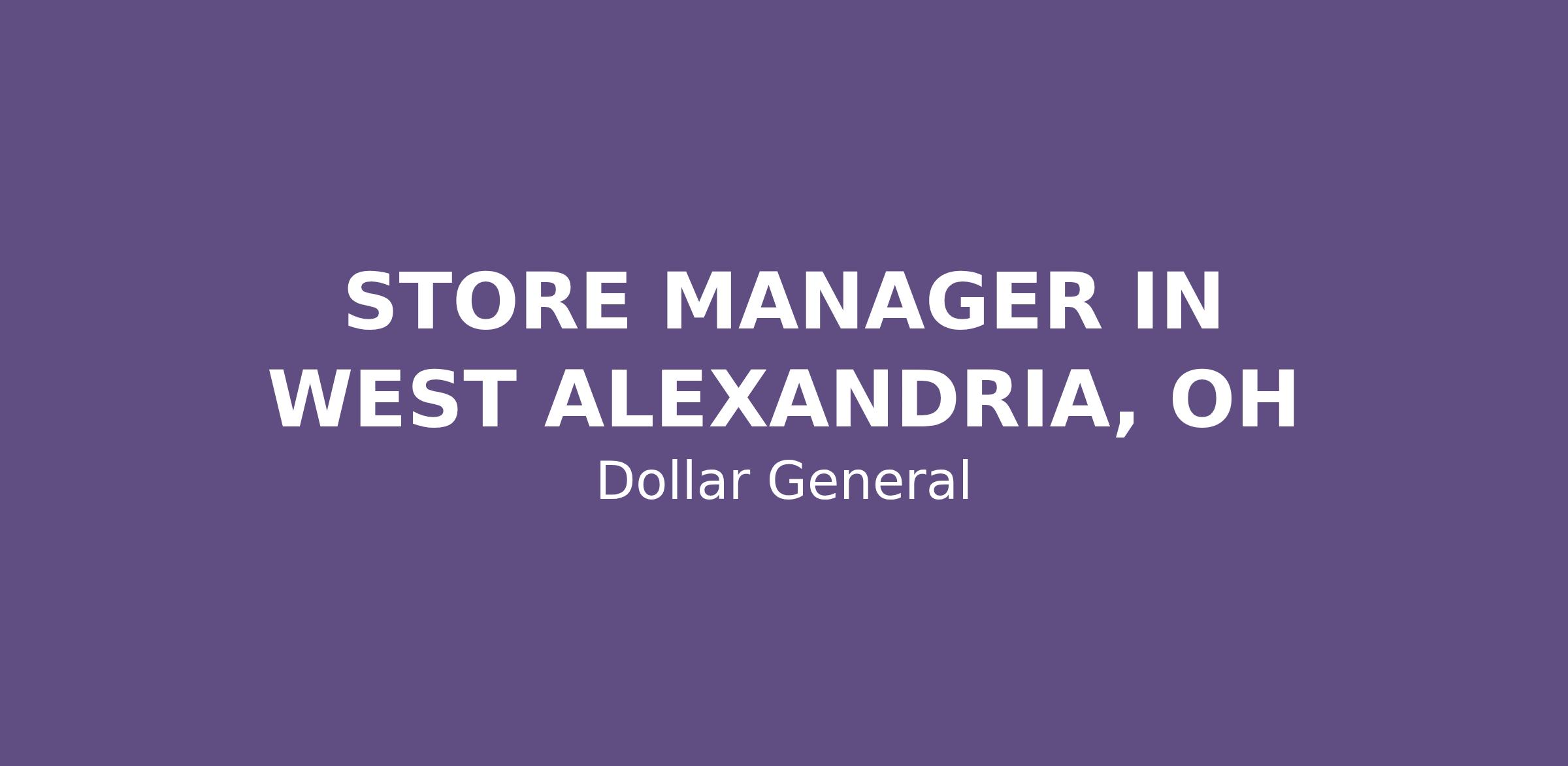 STORE MANAGER IN WEST ALEXANDRIA, OH