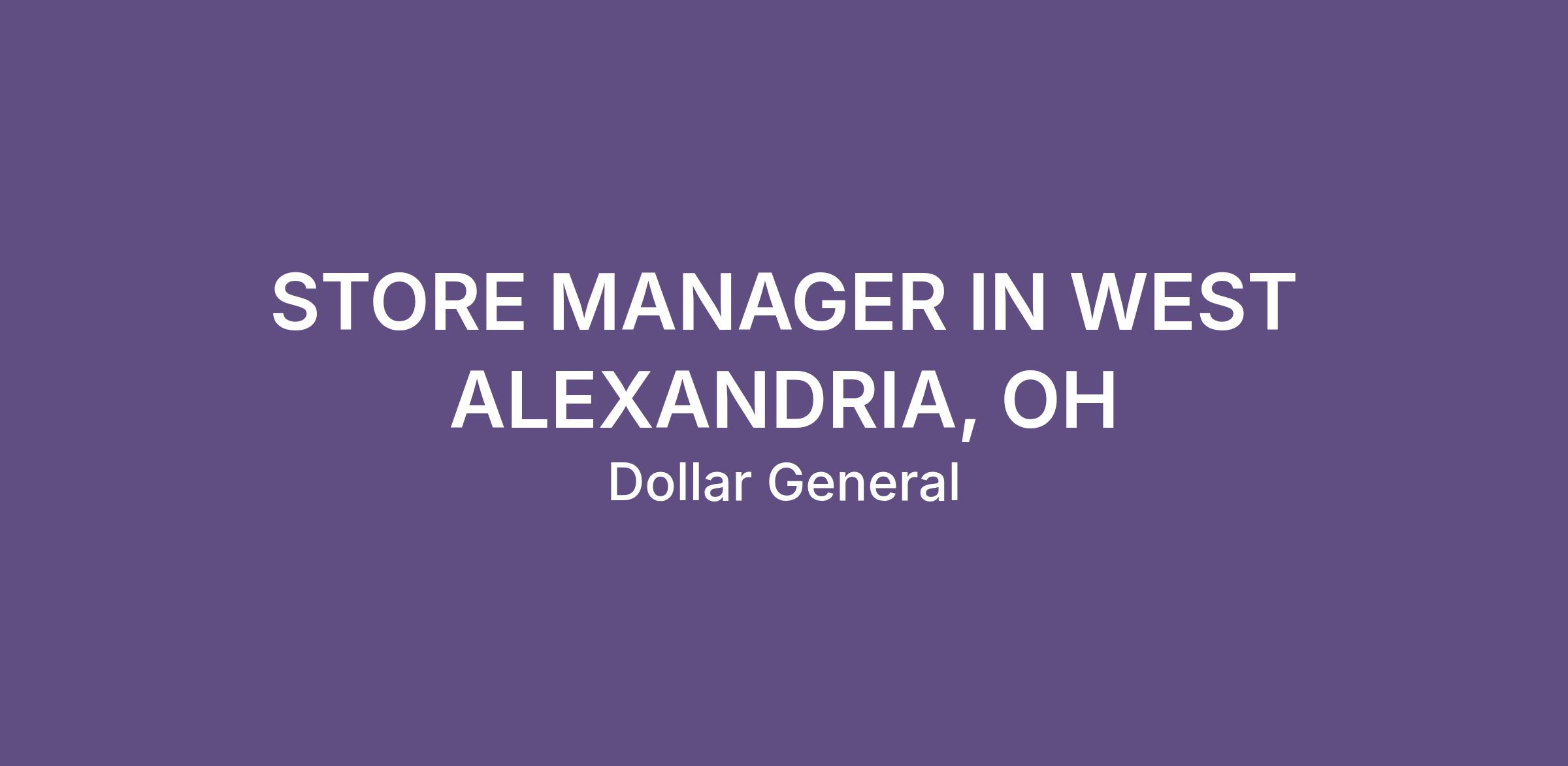STORE MANAGER IN WEST ALEXANDRIA, OH