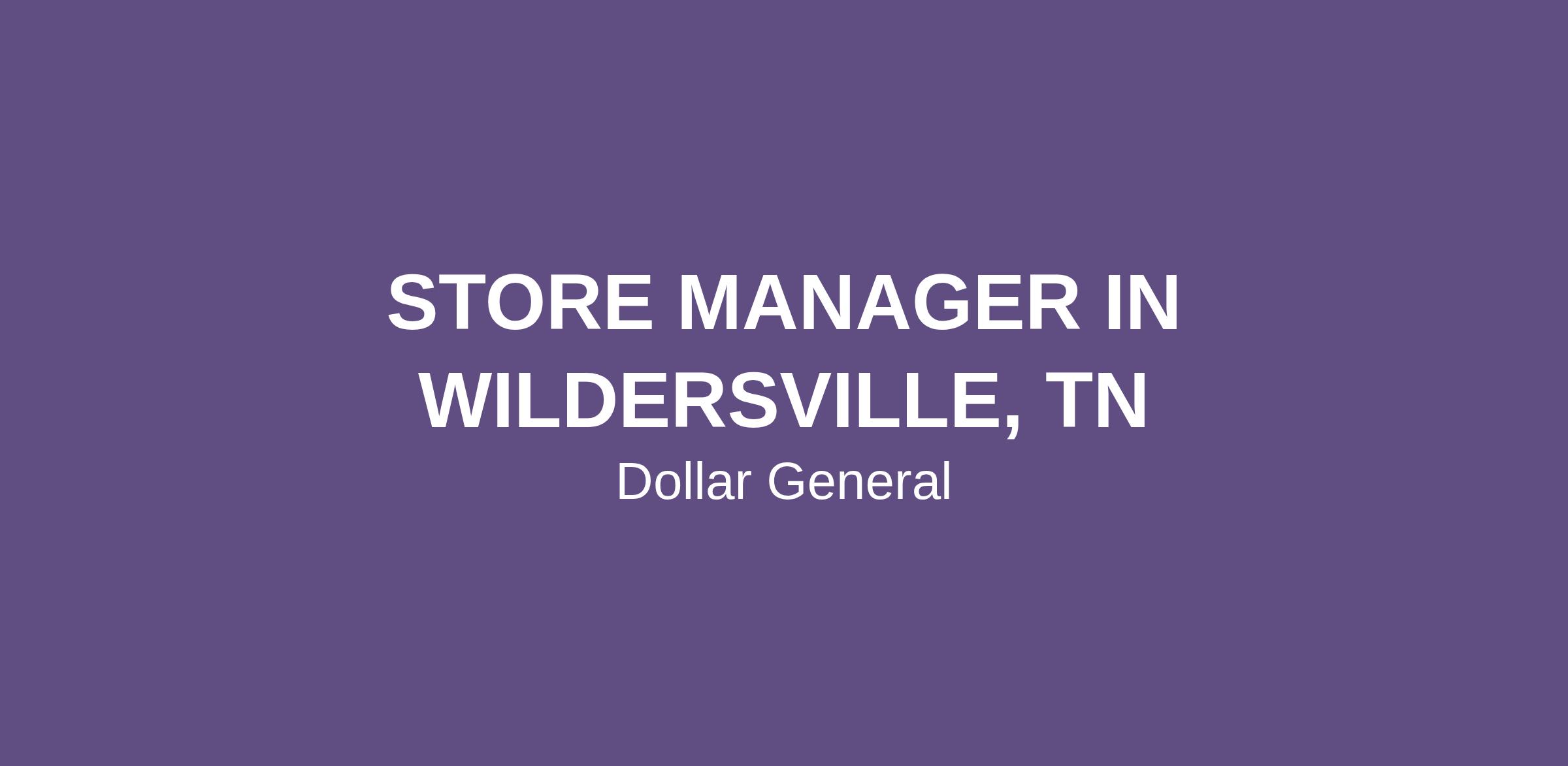 STORE MANAGER IN WILDERSVILLE, TN