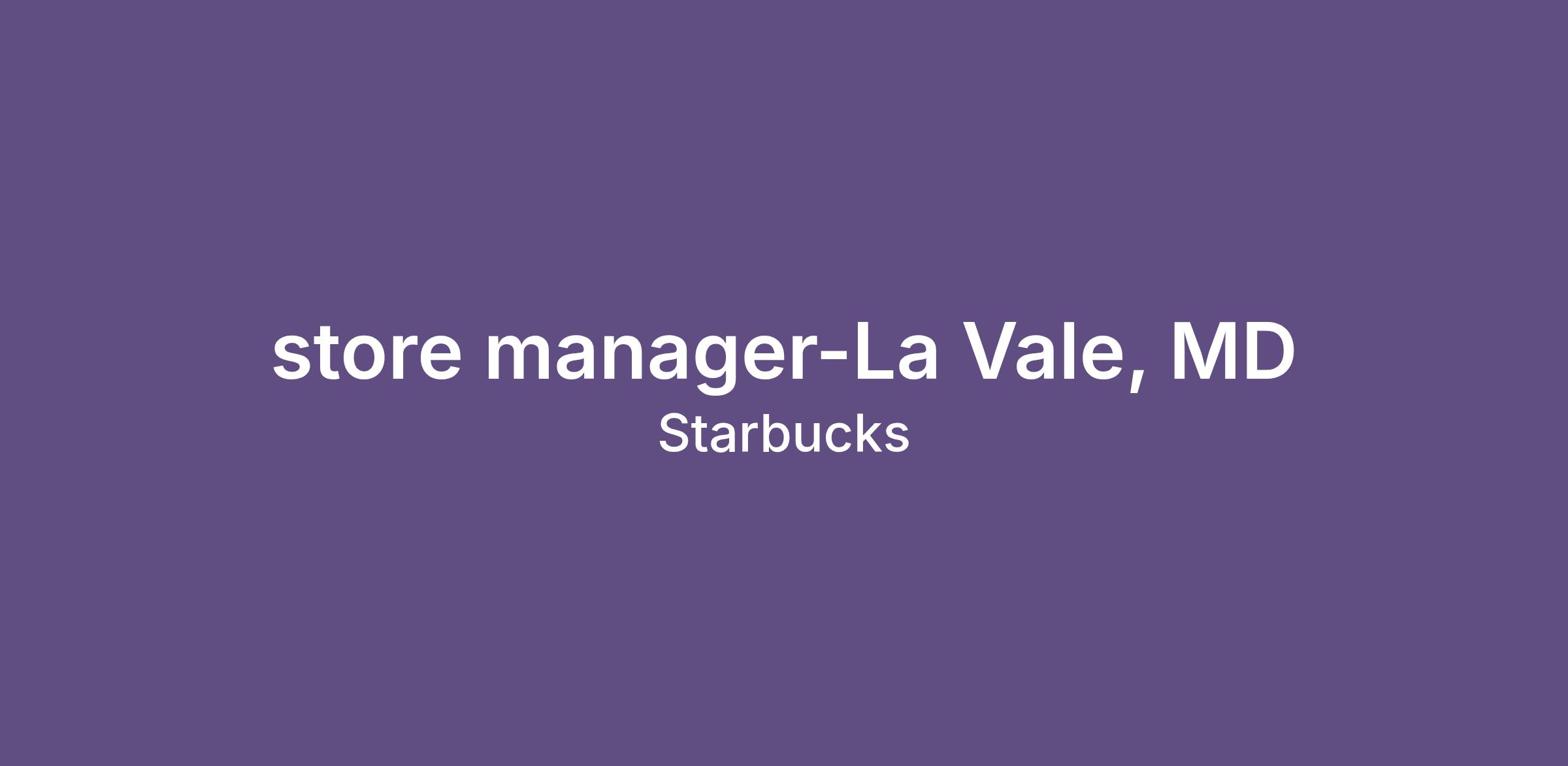store manager-La Vale, MD