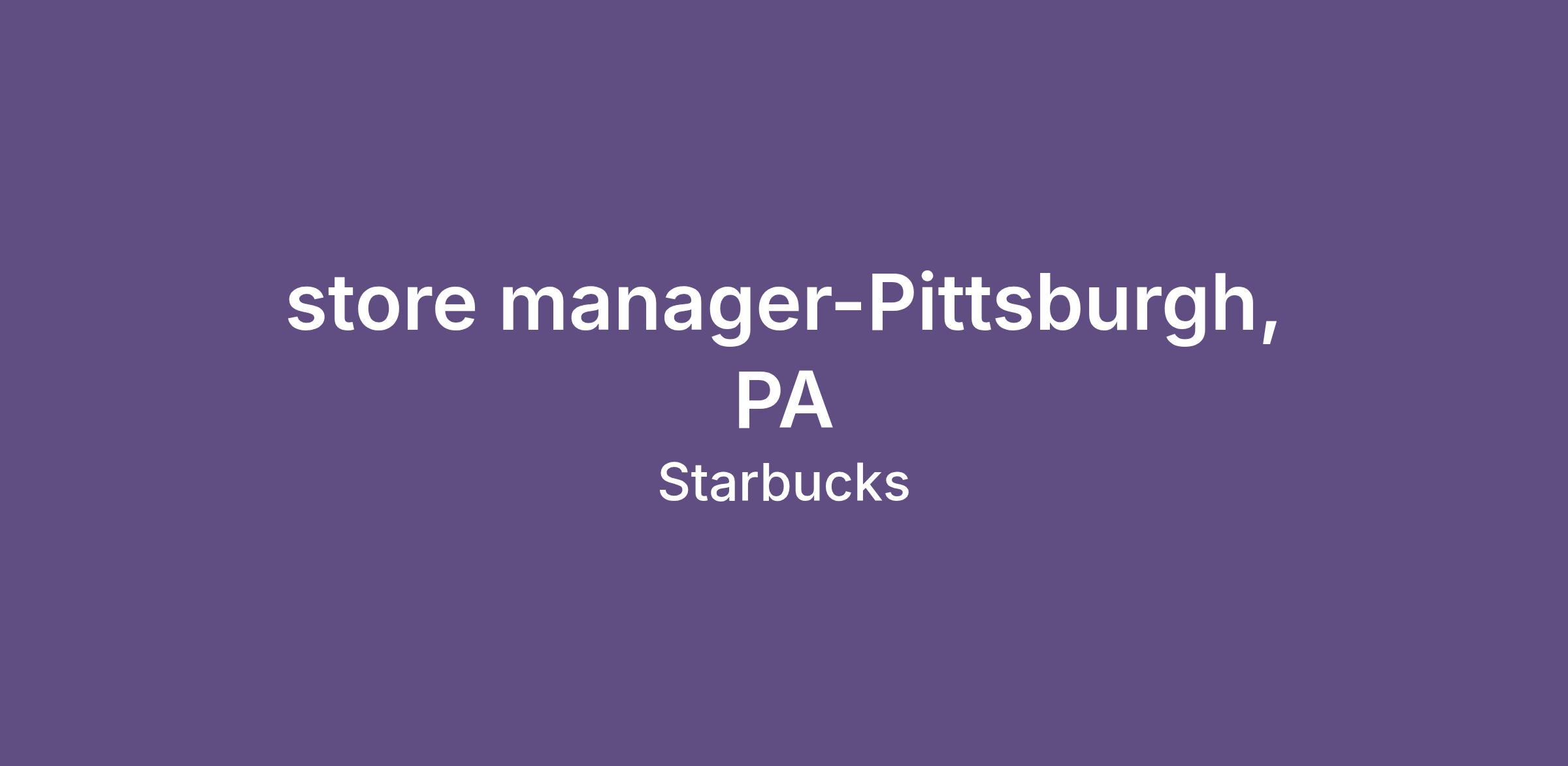 store manager-Pittsburgh, PA