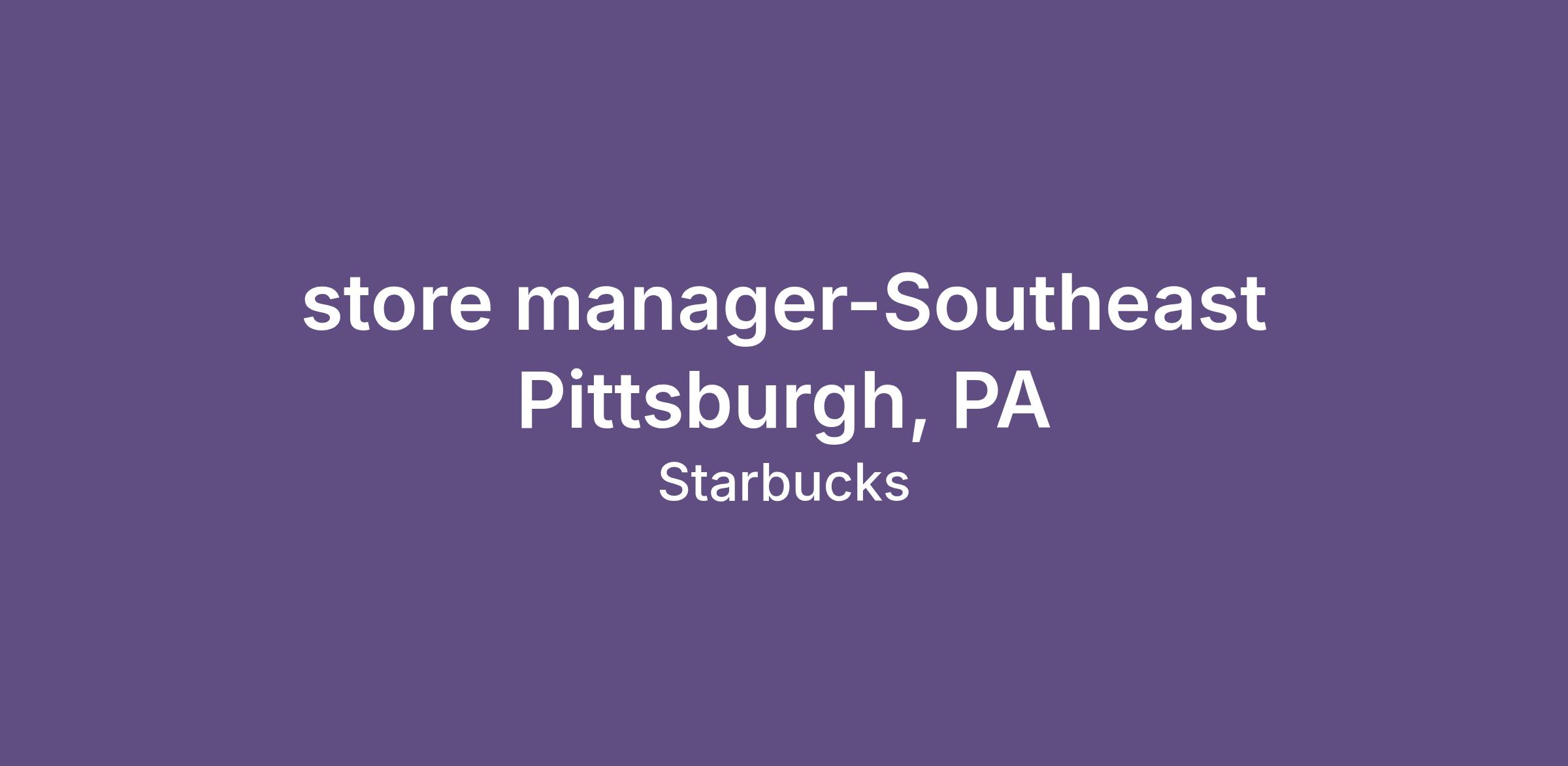 store manager-Southeast Pittsburgh, PA