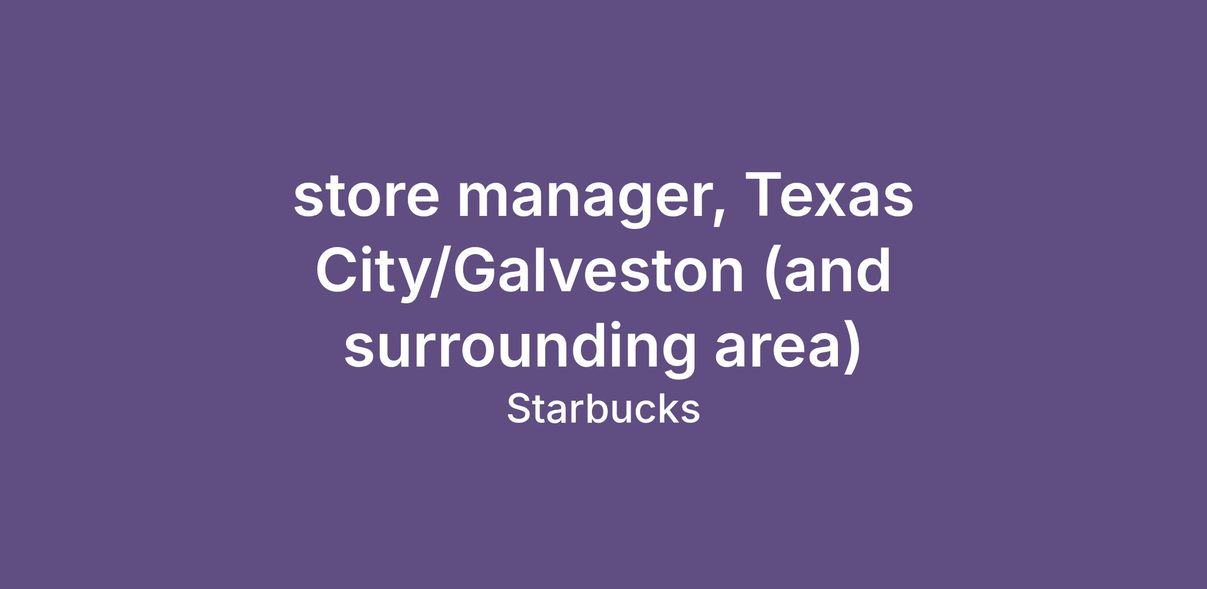 store manager, Texas City/Galveston (and surrounding area)
