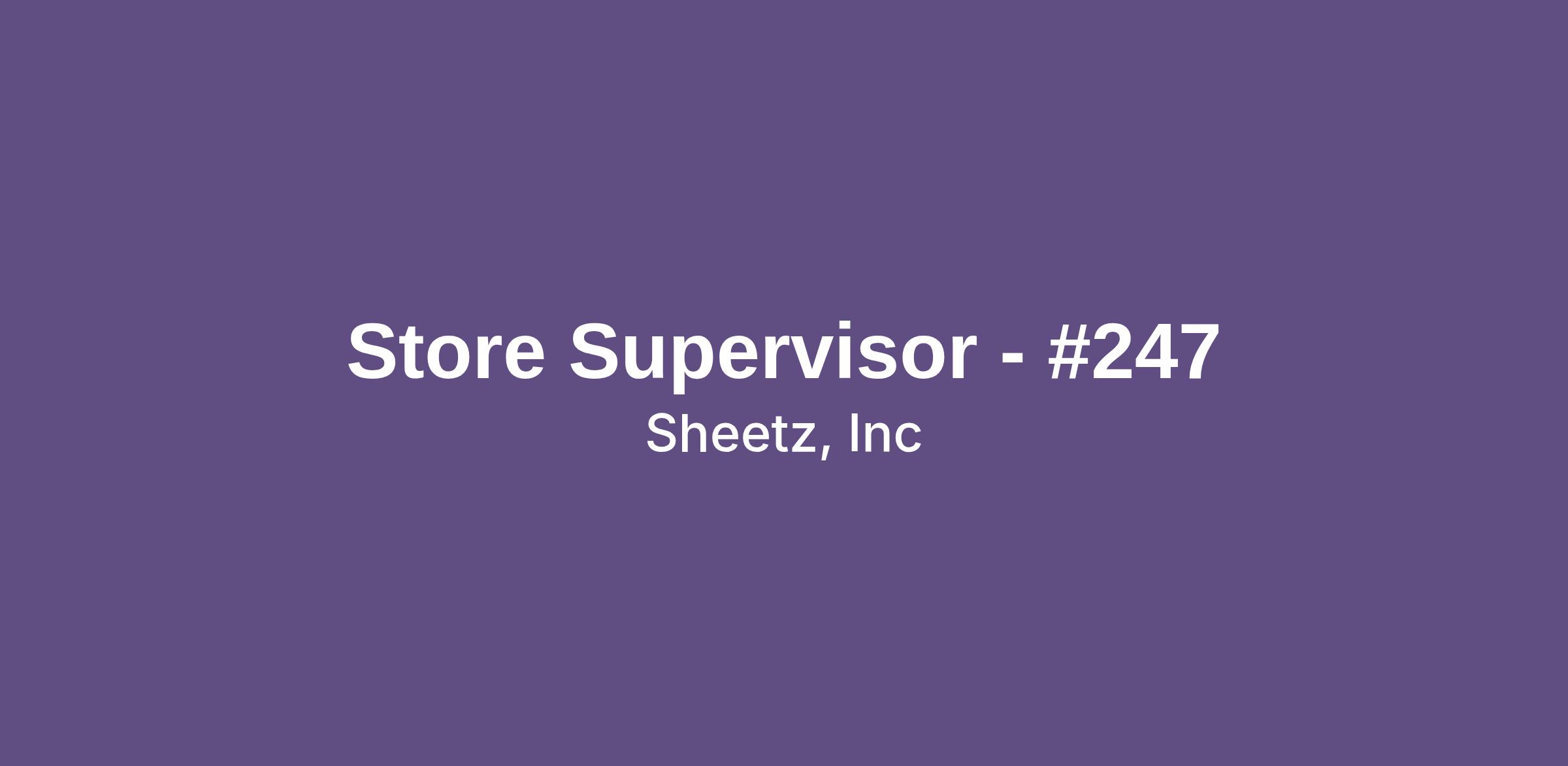 Overview:Ready for a career with limitless growth opportunities at a company that PROVES they value you, every single day? If you are a self-motivated, dependable and efficient employee with a positive attitude and the ability to prioritize tasks and delegate effectively, check out our available Supervisor position and LET’S MAKE SHEETZ HAPPEN!