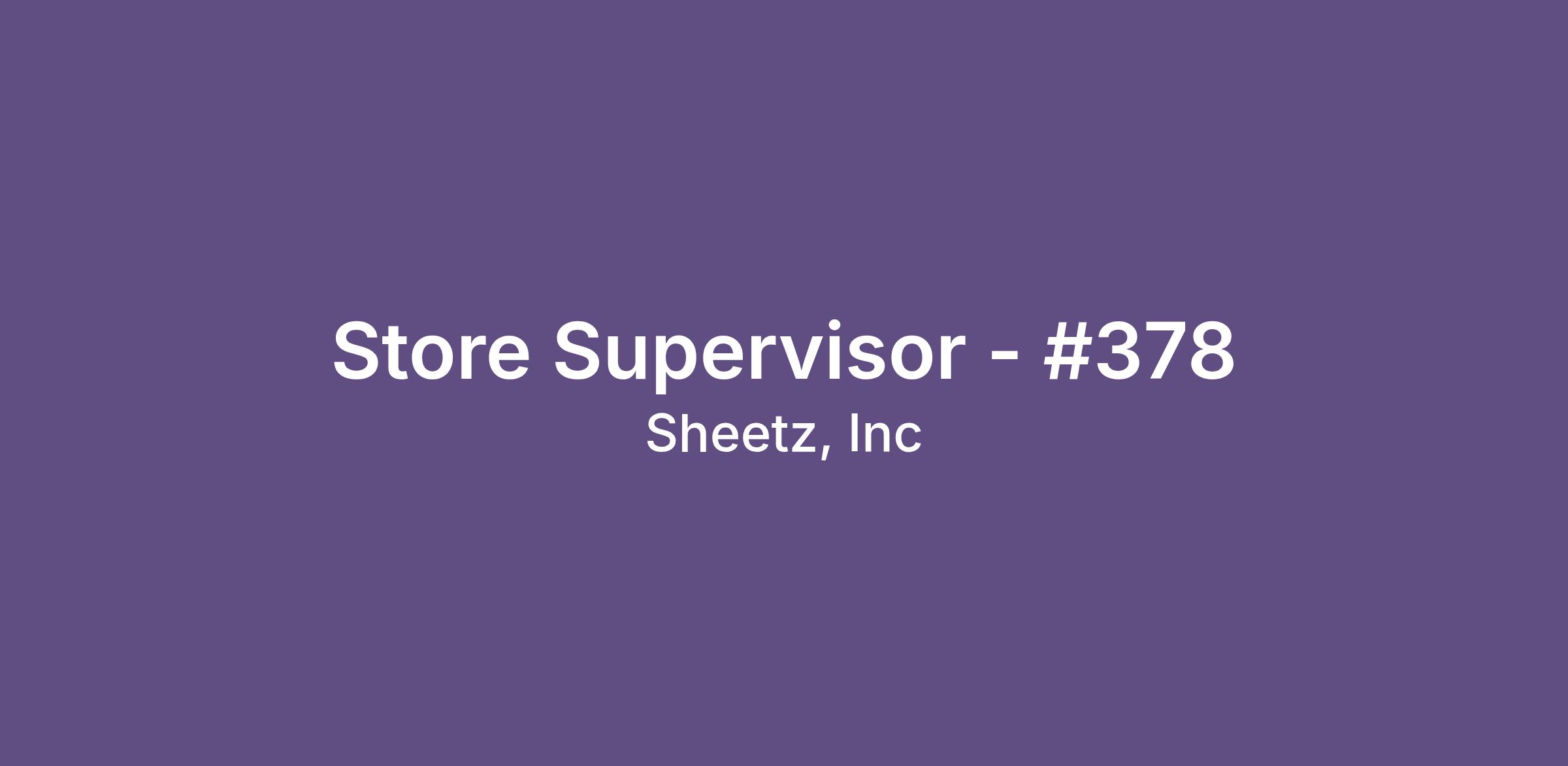 Store Supervisor - #378