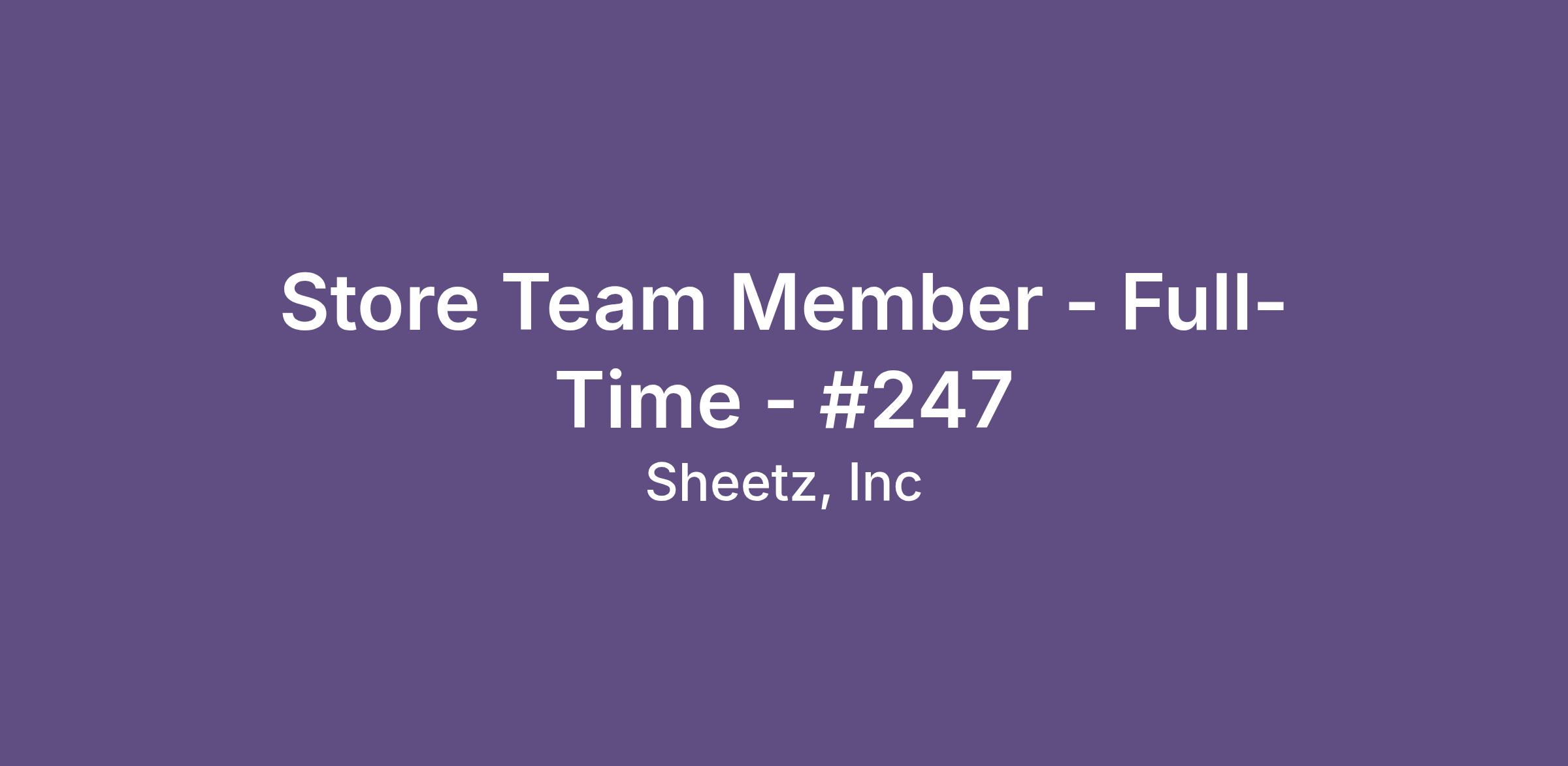 Overview:Got high-energy and love to hustle? Come join the fast-paced, FUN work atmosphere as a Store Team Member and MAKE SHEETZ HAPPEN!