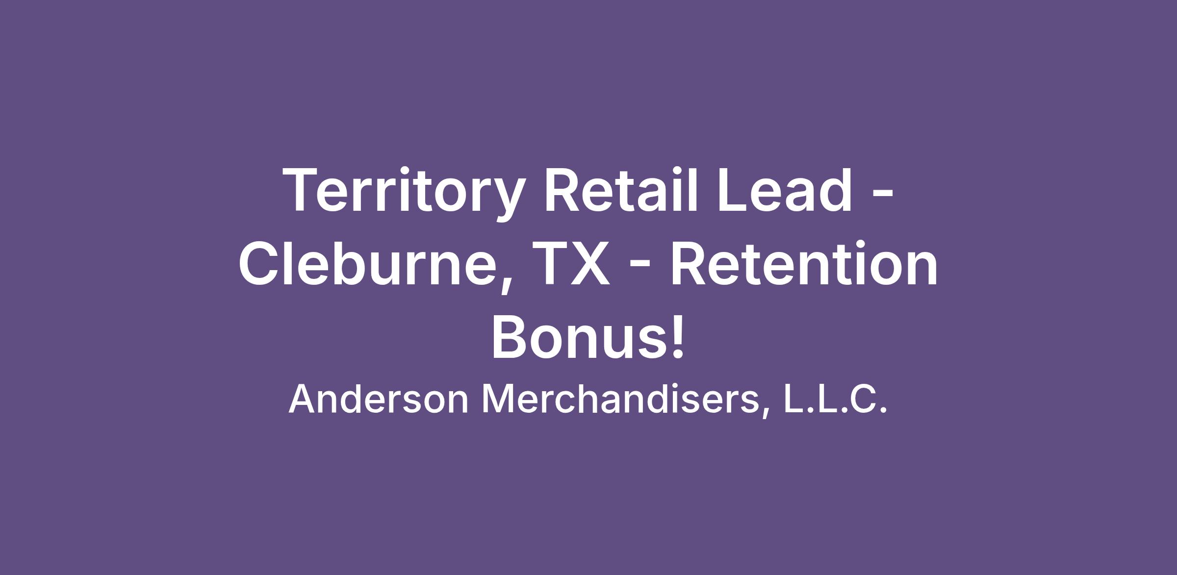 Territory Retail Lead - Cleburne, TX - Retention Bonus!