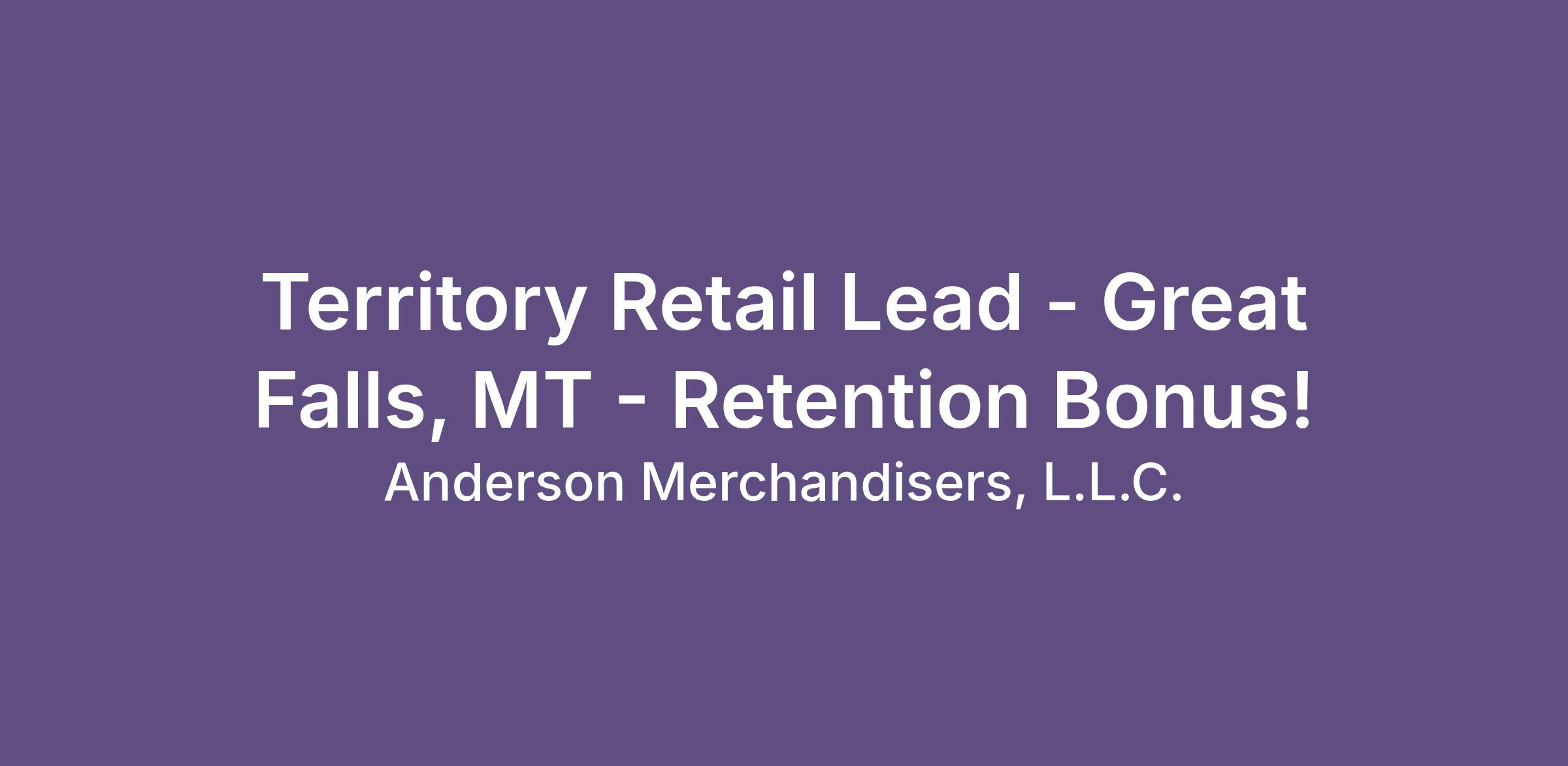 Territory Retail Lead - Great Falls, MT - Retention Bonus!