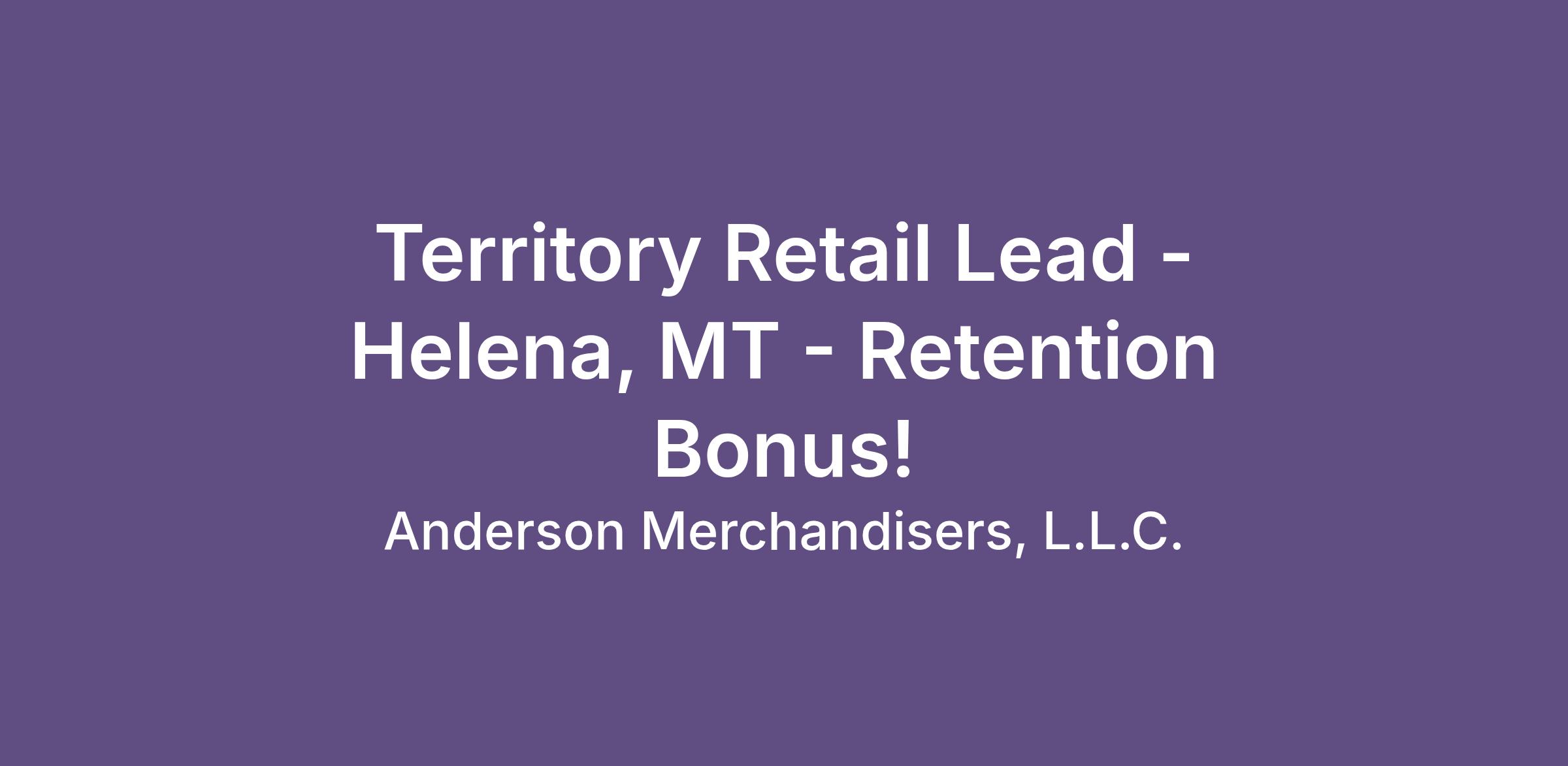 Territory Retail Lead - Helena, MT - Retention Bonus!