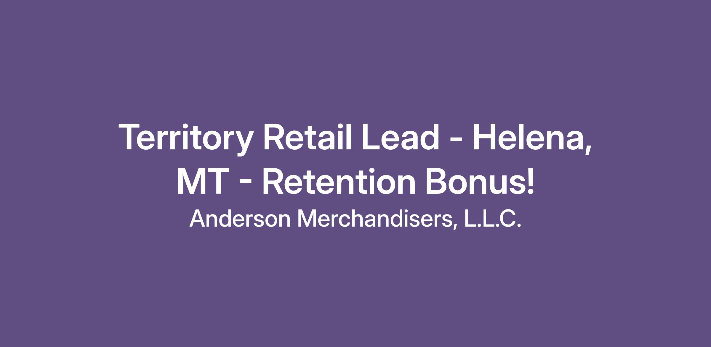 Territory Retail Lead - Helena, MT - Retention Bonus!