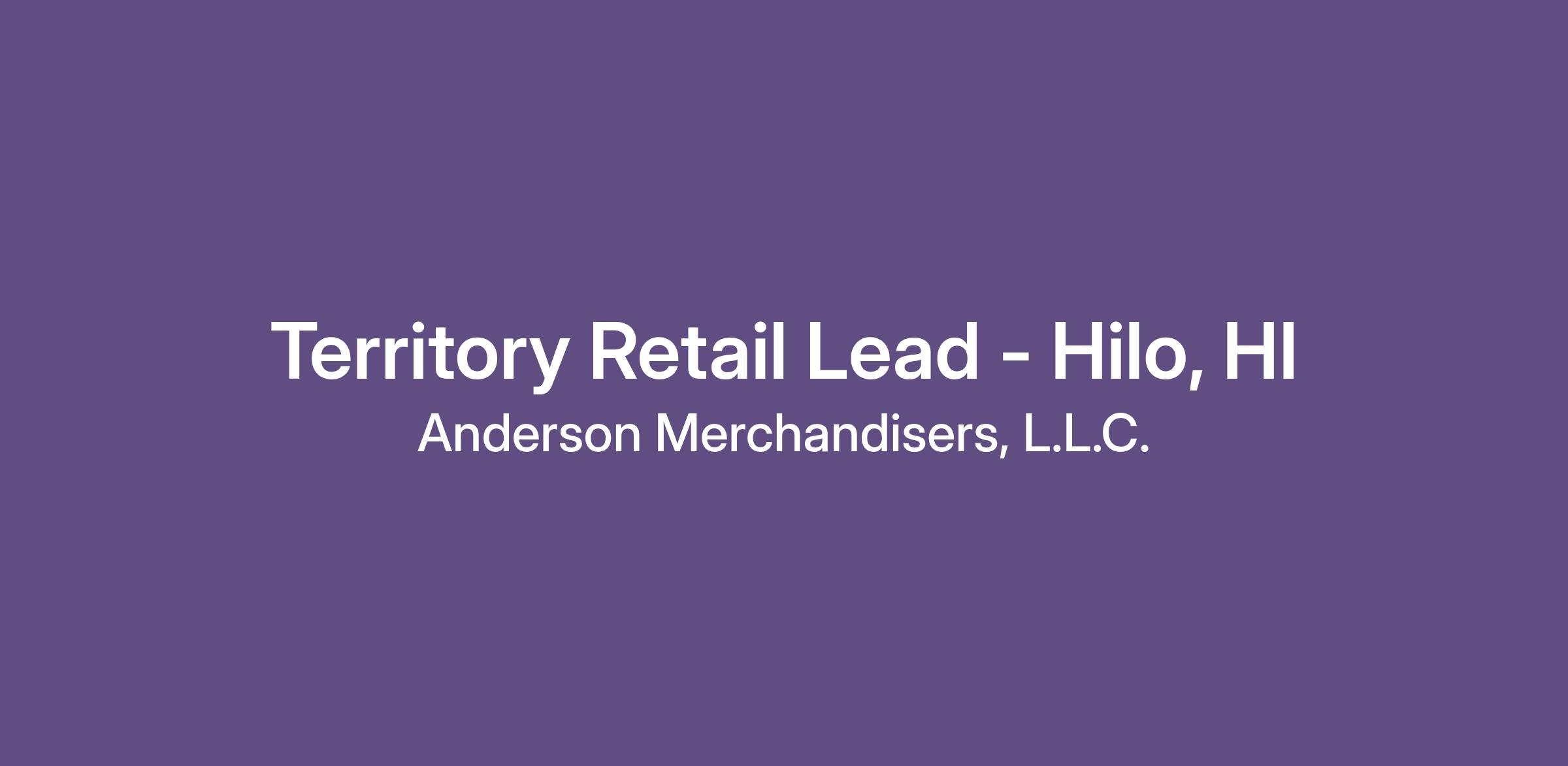 Territory Retail Lead - Hilo, HI