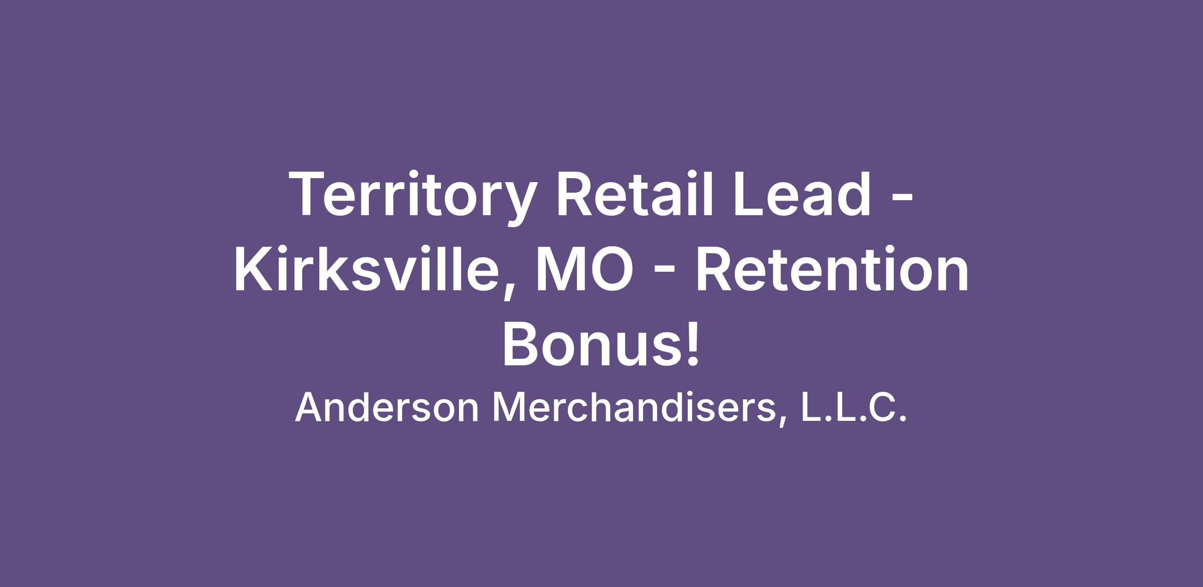Territory Retail Lead - Kirksville, MO - Retention Bonus!