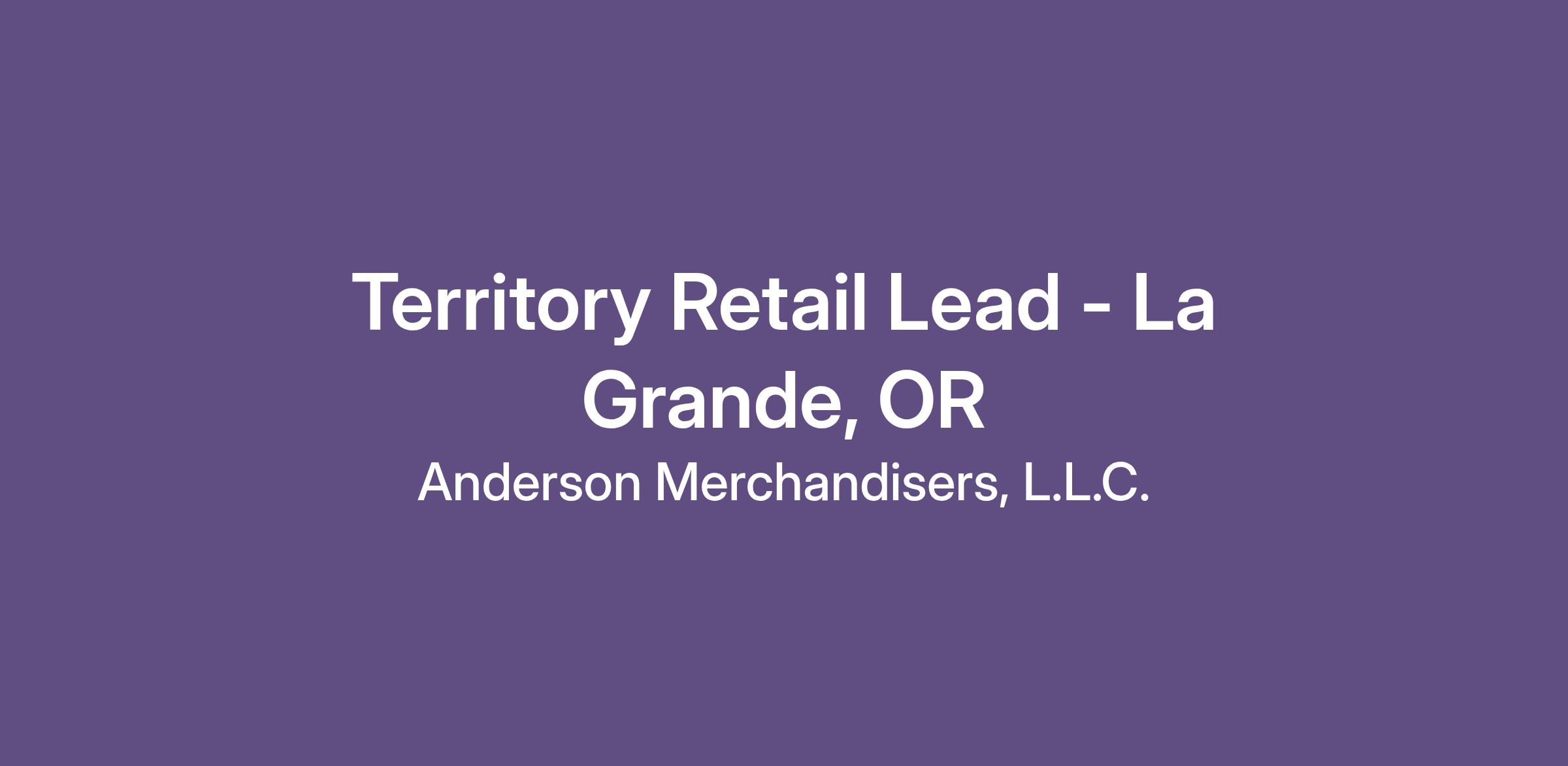 Territory Retail Lead - La Grande, OR