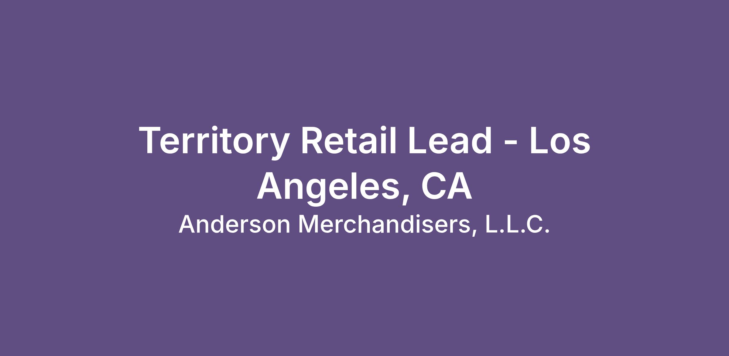 Territory Retail Lead - Los Angeles, CA