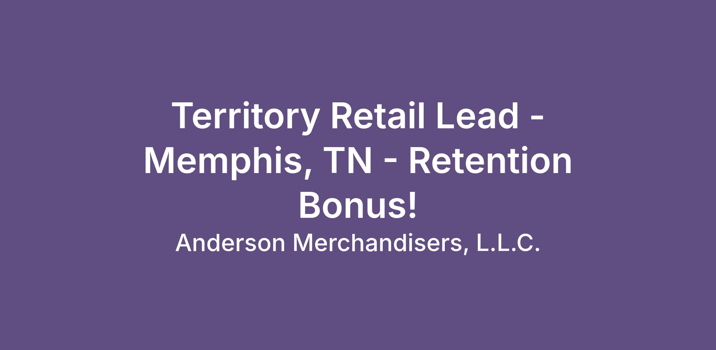 Territory Retail Lead - Memphis, TN - Retention Bonus!