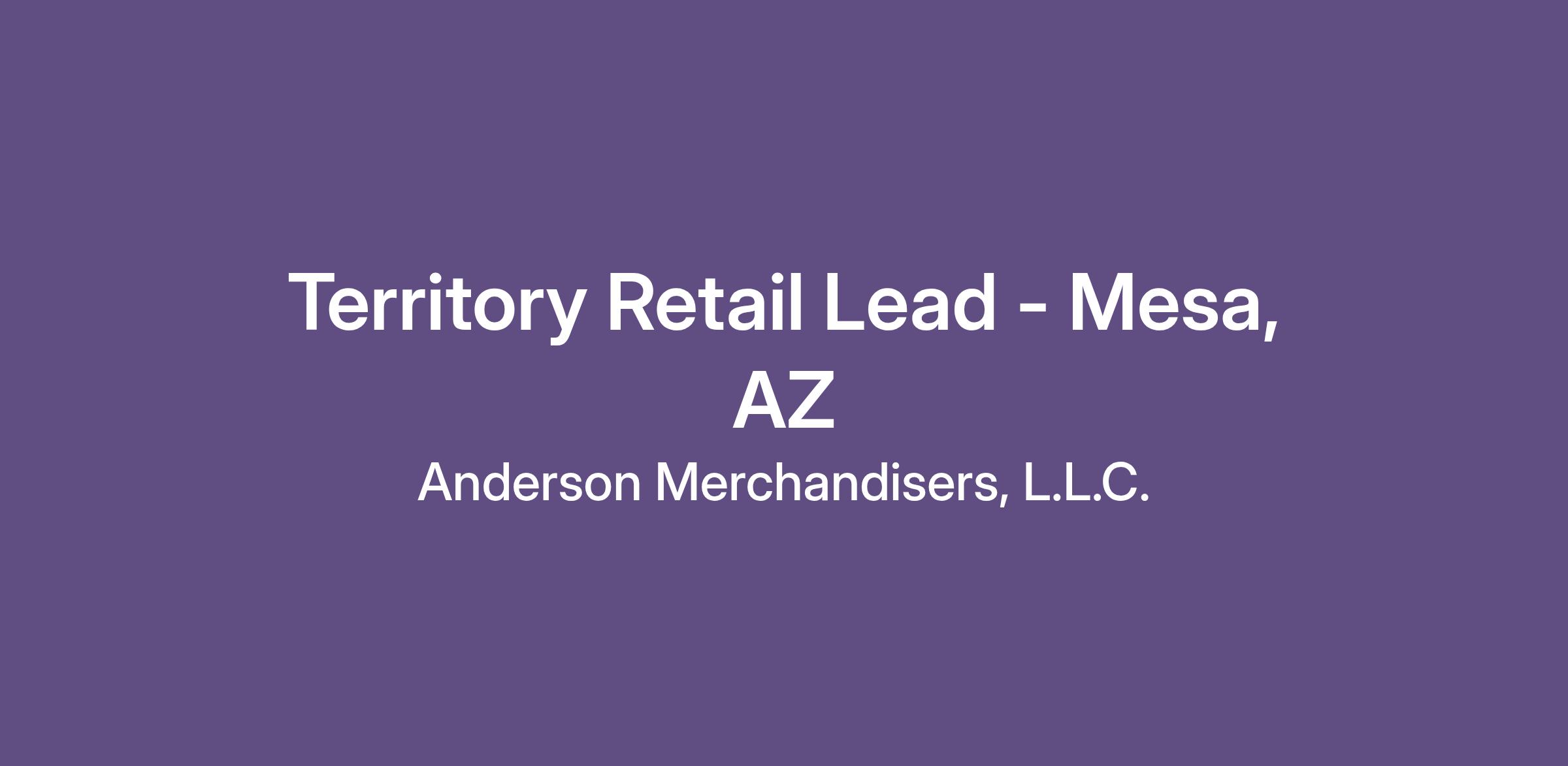 Territory Retail Lead - Mesa, AZ