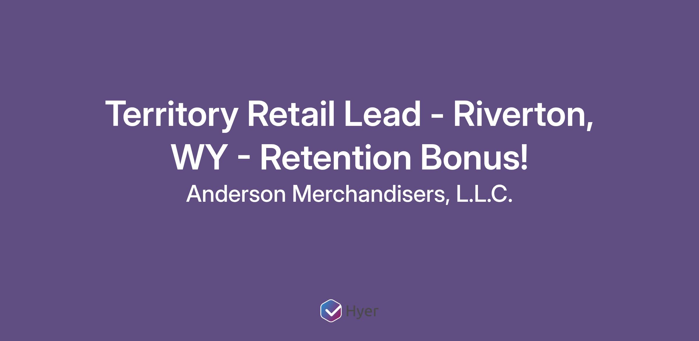 Territory Retail Lead - Riverton, WY - Retention Bonus!